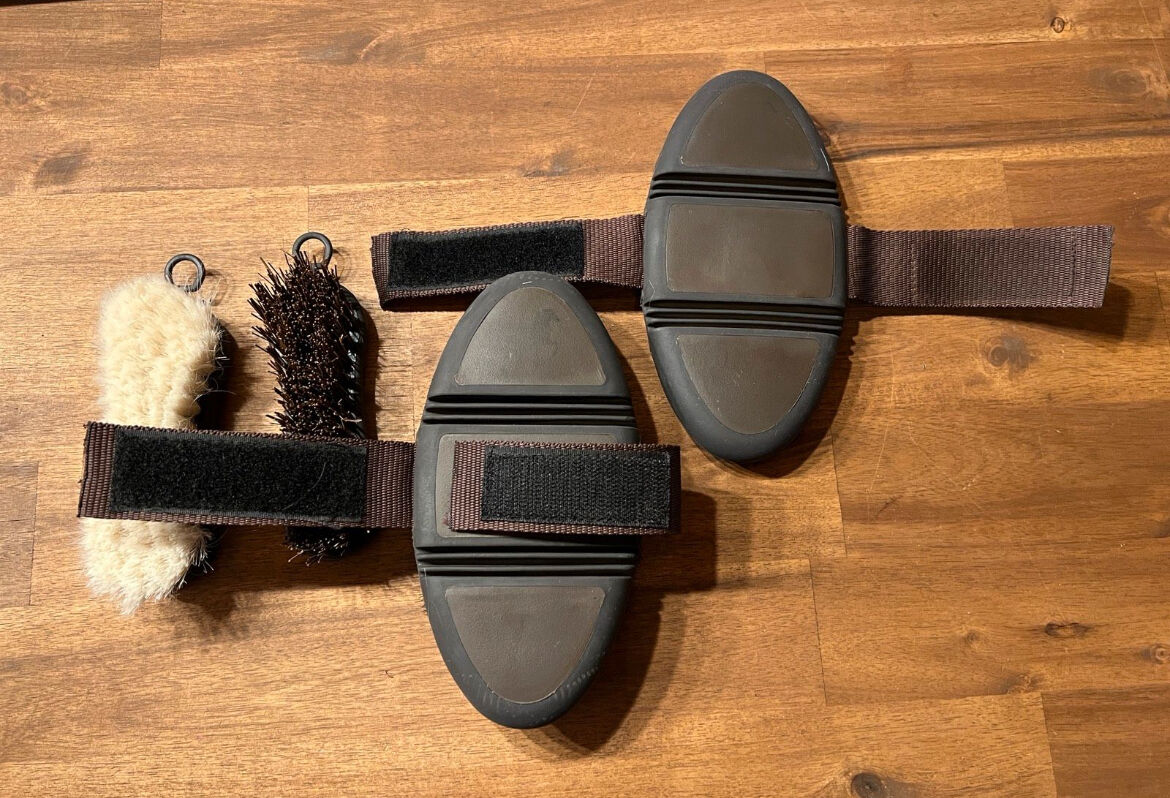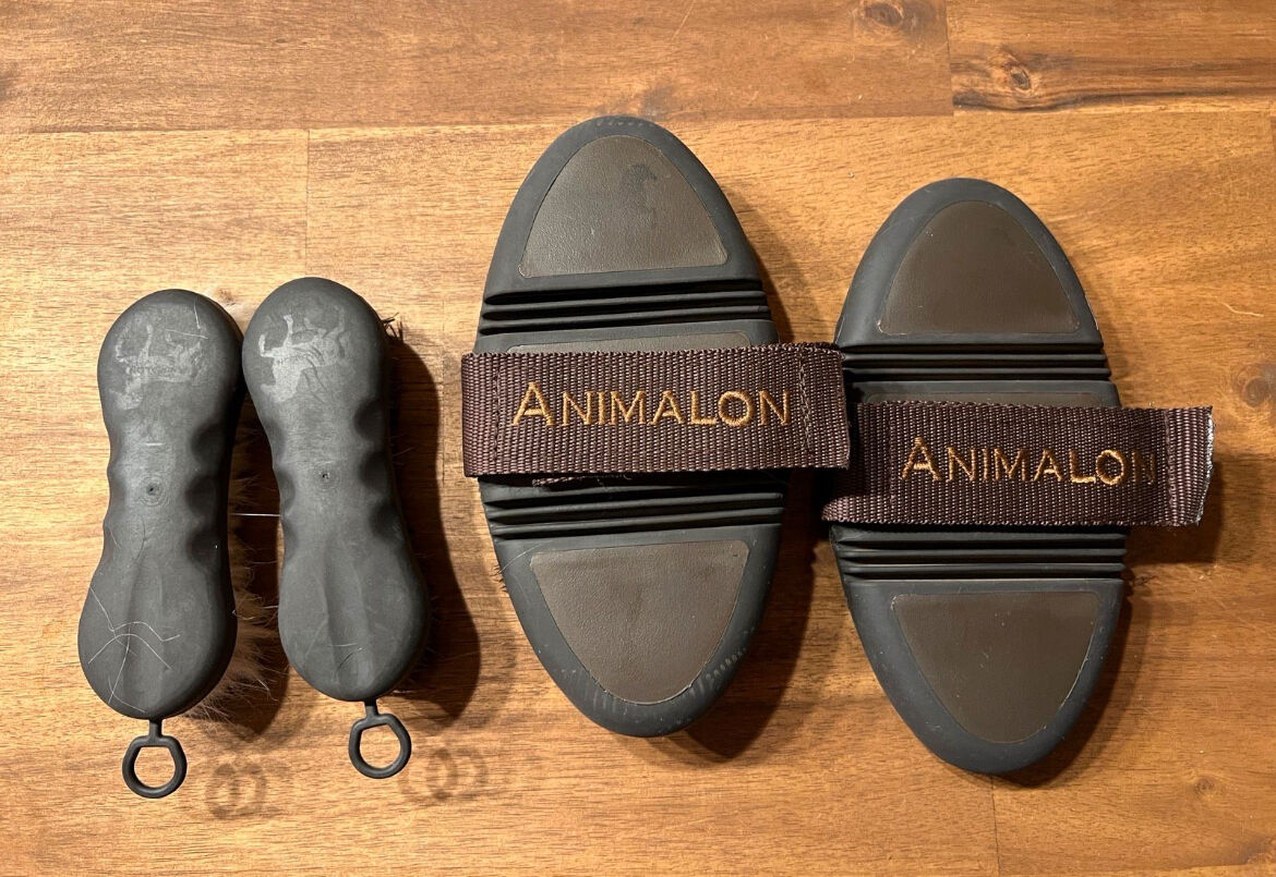 Animalon borstel set 4-delig - Ik verkoop een gebruikte maar in zeer goede staat verkerende borstelset van Animalon bestaande uit: Careflex trimsalonborstel, Careflex rubberen currykam, geitenharen gezichtsborstel en natuurharen hoefborstel. De trimsalonborstel en wreefkam zijn gebruikt maar in zeer goede staat, de gezichtsborstel en hoefborstel zijn beide nieuw omdat ik ze niet nodig heb gehad. Omdat alle borstels in de verzorgingsbox zaten, zijn ze natuurlijk allemaal schoongemaakt en dus direct klaar voor gebruik. De grooming brush en currykam zijn perfect aan te passen aan de hand door middel van een klittenband polsband zodat je geen kramp in je hand krijgt.