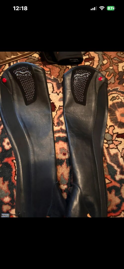 Animo rijbroeken - Zo goed als nieuw hoog comfort elastische vetersluiting aan de voorkant rits aan de achterkant snel aan te trekken spoorhouder geen binnenvoering Gemaakt in Italië verticale Animo-belettering Materiaal: 100% leer