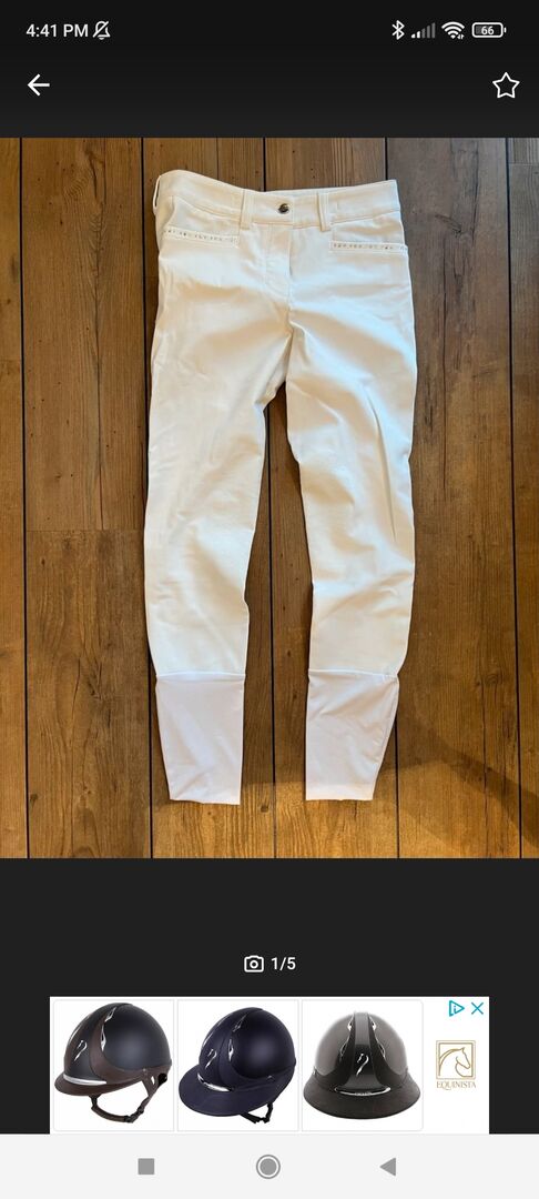 Verkaufe unfassbar bequeme Turnierreithose der Marke Animo. Habe sie hier gebraucht gekauft, jedoch ist sie mir zu groß und ich muss sie leider weiterverkaufen. Die Reithose ist in einem top Zustand. Einwandfreier Kniebesatz und laut Vorbesitzerin (was man der Hose auch ansieht) kaum getragen. . Versand bei Kostenübernahme möglich. PayPal (vorzugsweise Freunde, bei W/DL trägt der Käufer die Kosten) vorhanden. Keine Rücknahme/Umtausch, da Privatverkauf.
