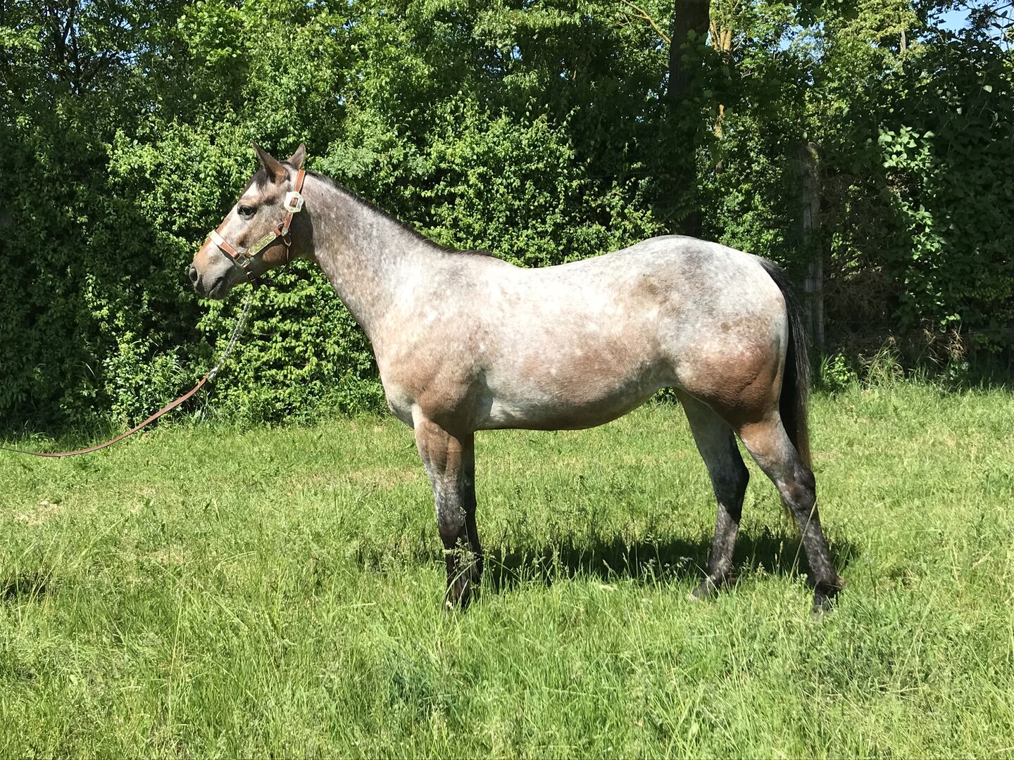 Geweldige 2 jaar oude merrie, is 5 panel N/N over de ouders. We schatten de uiteindelijke grootte op 153 -155 cm ongeveer. Ze is gezond, nooit ziek geweest en heeft een geweldig exterieur.