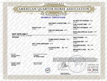 Bij aflevering heeft hij een 6 panel test, een AQHA papier, een paardenpaspoort, is gechipt, gevaccineerd en meerdere malen ontwormd! Hij heeft een witte onderlip - mogelijk is een dubbele registratie mogelijk.
