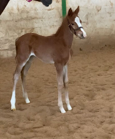 Geboren 02/2026 - momenteel Sorrel - kan ook Chestnut of Red Roan worden