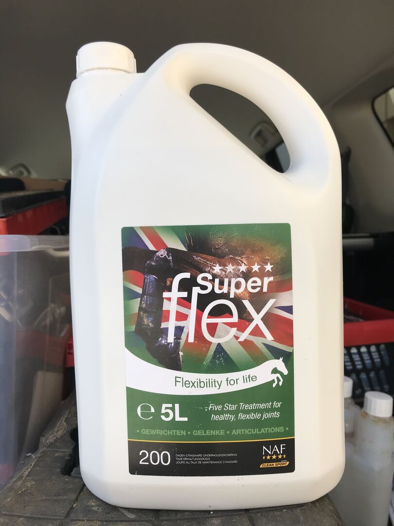 Artrose? NAF Superflex vloeibaar ca. 4,8 liter - Te koop wegens het verlies van mijn paard: NAF Superflex vloeibaar 5 liter (inhoud zeker nog 4,8 liter). Voedingssupplement voor paarden voor het behoud van gezonde soepele gewrichten. Het hielp mijn paard met zijn artrose Meer informatie over de ingrediënten op de homepage van de fabrikant. Originele prijs 190,-- € Afhaling of verzending met DHL voor 8,49 €.