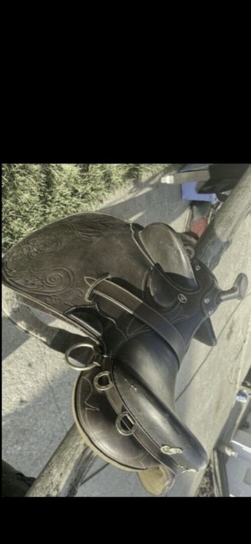 Australië Zadel - Zadel zeer goed gewatteerd De stiksels zijn scheurvast en de zitting met pommel is zeer comfortabel. De kwartieren zijn versierd met een speciaal en elegant ontwerp.