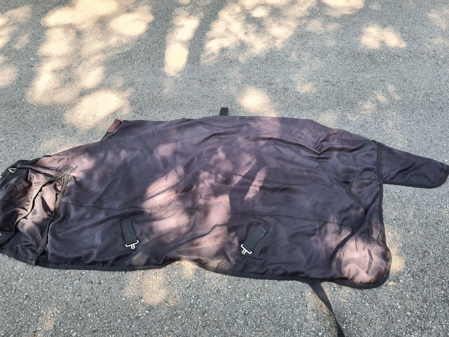 Back on Track Regendeken 165cm - Ik verkoop een zeer goed gebruikte Back On Track regendeken. Het tapijt heeft een paar gebruikssporen maar is volledig functioneel en in goede staat.