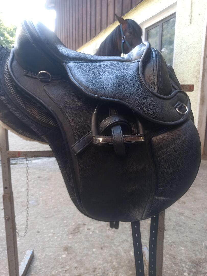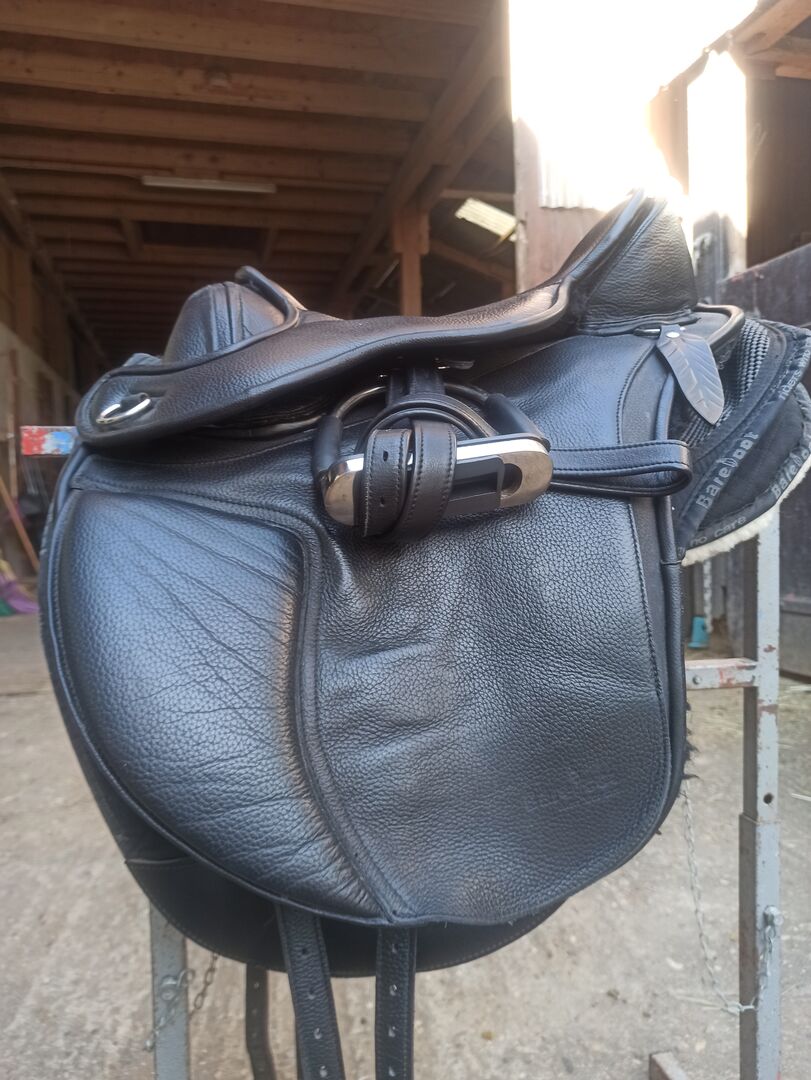 Barefoot zadel "Nottingham" zit maat 1 met toebehoren - Met pijn in het hart verkoop ik mijn Barefoot zadel "Nottingham" in zitmaat 1 in zeer goede staat. Inbegrepen zijn de originele Barefoot veiligheidsstijgbeugels, de Barefoot stijgbeugelriemen, het Barefoot Physio zadeldekje voor het Nottingham zadel, een schapenwollen zadelhoesje en de verwisselbare pommels in de maten wide & middle en het zadeldekje. Het zadel is in goede staat en goed onderhouden zoals te zien is op de foto's en heeft zelden op de rug van het paard gelegen.