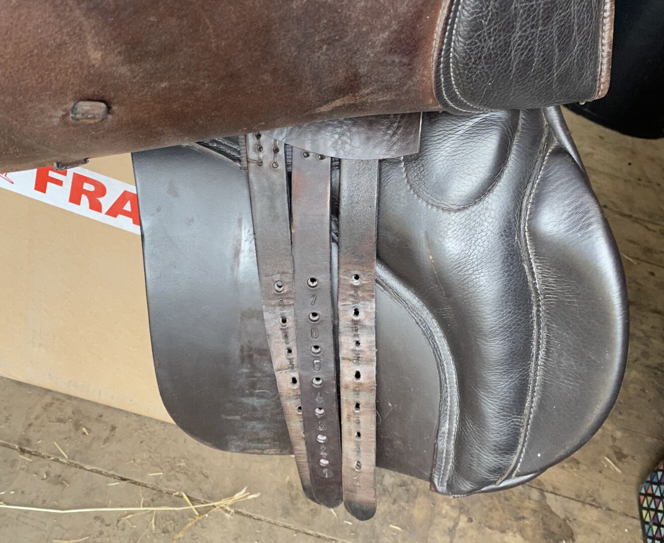Brown Barnsby saddle, gold piping on seat. Used, but great condition. Very comfortable, memory foam seat. Only selling because pony has lost a lot of muscle and doesn’t fit him anymore.