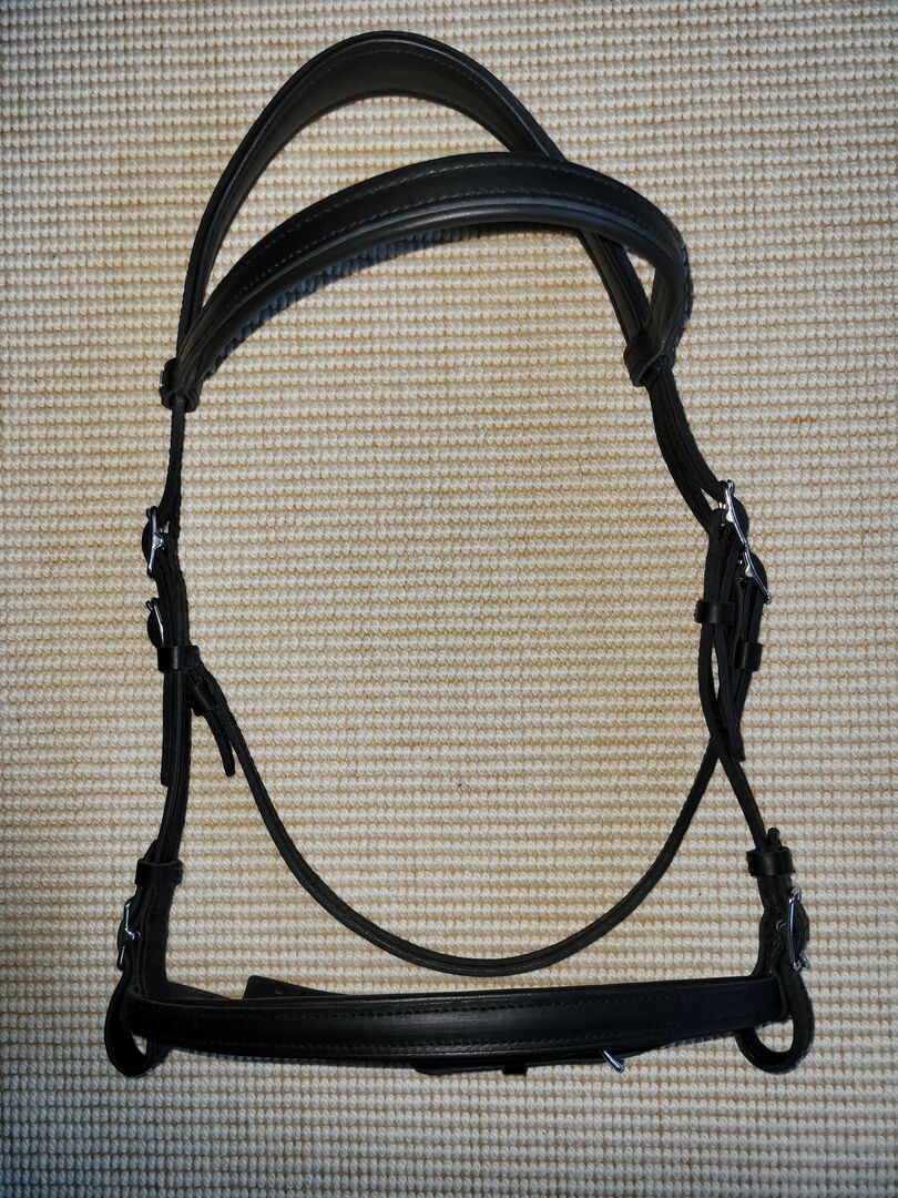 Barok hoofdstel van Hillbury - Hoofdstel Esmeralda, maat warmbloed, zwart/zilver, alleen gepast, is te groot voor mijn merrie ondanks opmeting. Kosten CHF 215 inclusief inklaring.