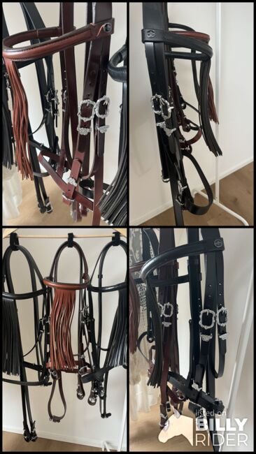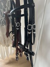 Barok hoofdstellen met decoratieve gespen - Te koop laatste barok hoofdstel in zwart en bruin met zilveren gespen, maat COB/WB