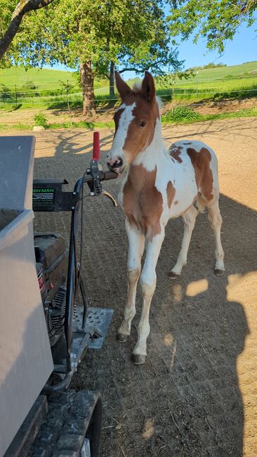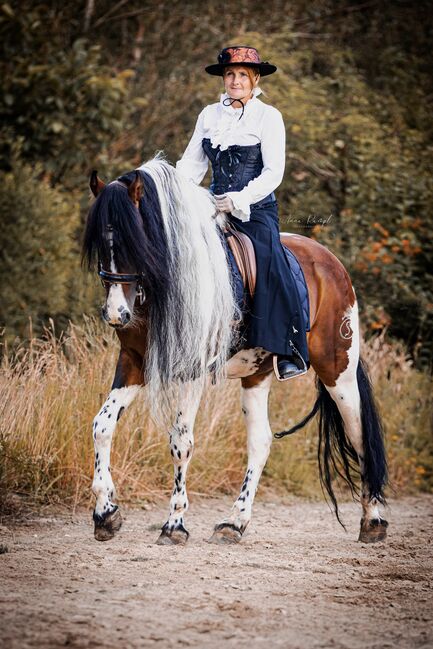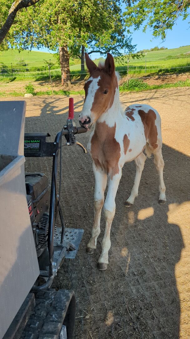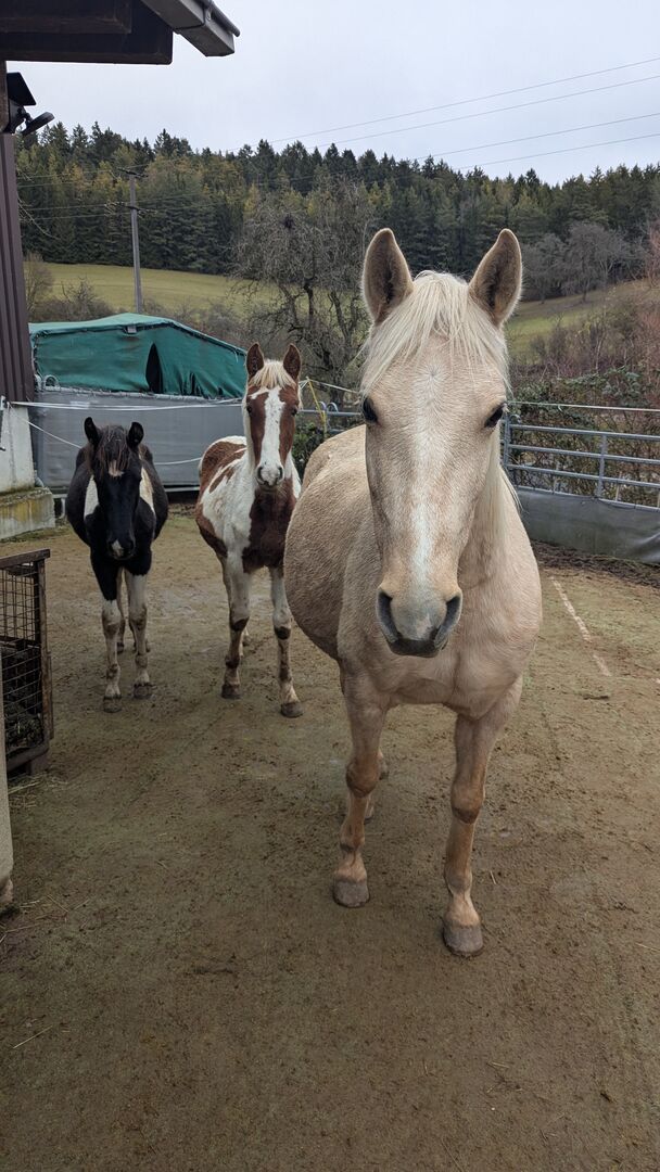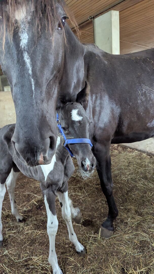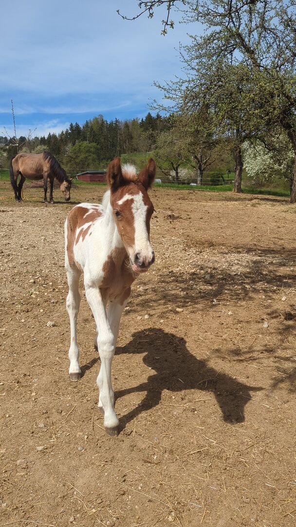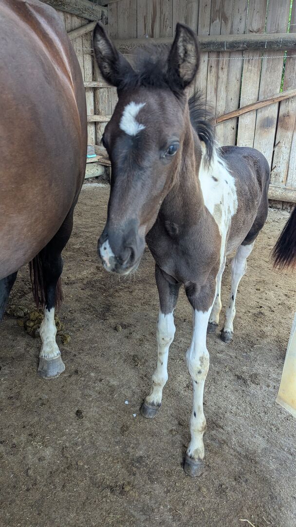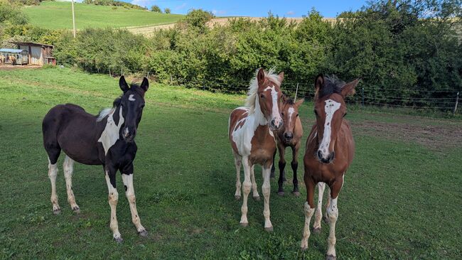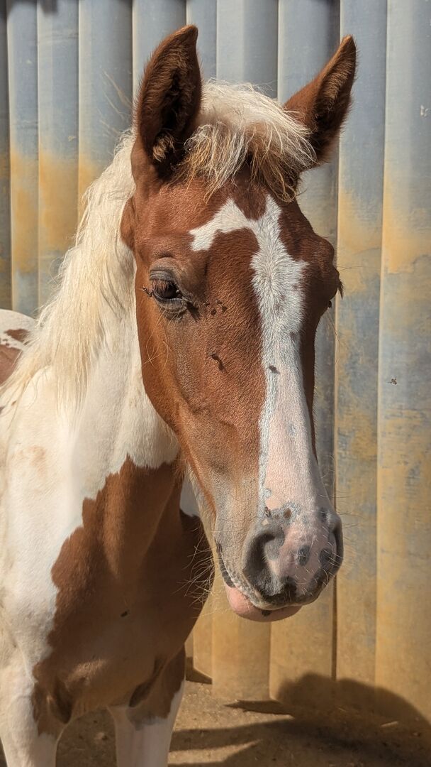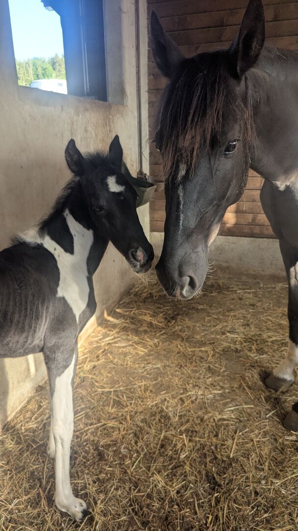 Baroque Pinto, Jaarlingen , Hengst , Merrie - Onze prachtige Azizam maakt niet alleen indruk met haar uiterlijk, maar ook met haar fantastische karakter. Ze groeit op met andere veulens in de kudde. Beide veulens zijn nu 1 jaar oud en zullen een uiteindelijke grootte van 162/164 bereiken. Haar broer (zie foto's) is ook te koop. Azizam is een dekking uit een prachtige, supermooie Spaanse merrie en de droomhengst Santiago (laatste foto's). Santiago (vol papier) is Mr Cool 😎 en dat is precies wat hij doorgeeft aan zijn nakomelingen. Er staan een aantal deuren open voor Azizam, of het nu als vrijetijdspaard, in de working equitation, in de westernpiste of in de showpiste is, ze zal zeker haar eigen weg gaan. Ze is nu op zoek naar een geschikte tweebenige partner. Azizam wordt alleen verkocht aan mensen met verstand van paarden!!! Momenteel winterprijs