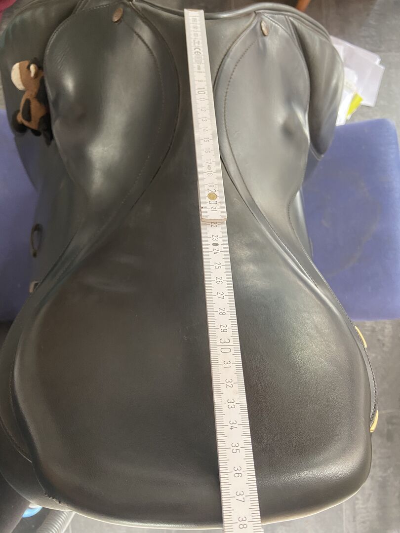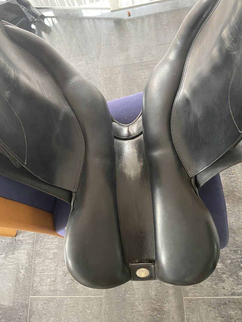 Bates Australia Springzadel, 17.5" - Ik verkoop mijn Bates springzadel dat nog in goede staat is. Zie de foto's voor tekenen van gebruik. Het zadel heeft 17,5 inch, slokdarmplaatje verwisselbaar. Ik voeg graag de bijpassende stijgbeugelriemen toe (zonder stijgbeugels zelf!) zonder de aankoopprijs te veranderen.