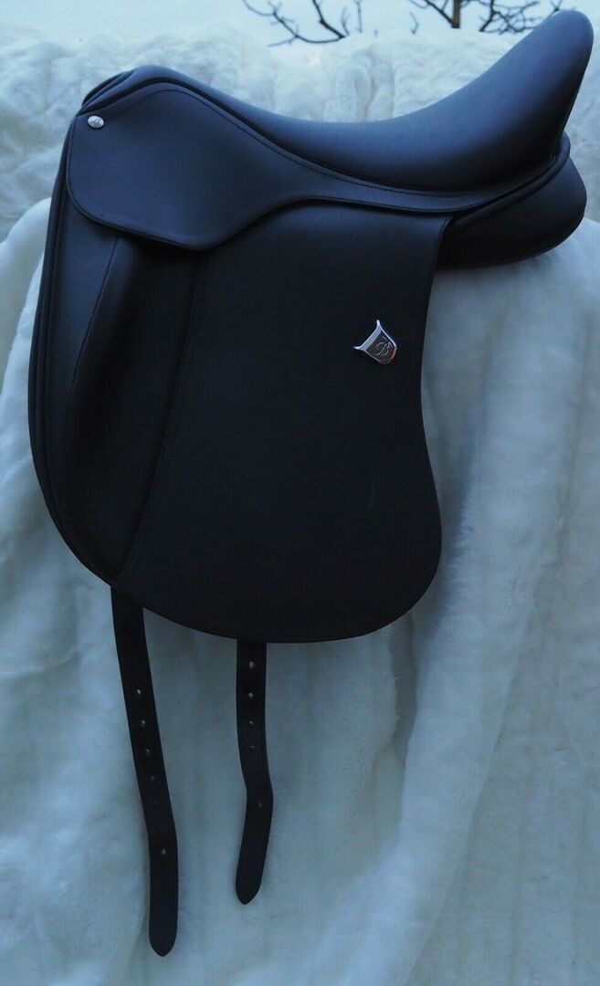 BATES Innova Dressuurzadel met CAIR - Ik kocht het zadel in 2020 voor mijn ponymerrie en heb het nog niet één keer gebruikt omdat ik besloot een op maat gemaakt zadel te kopen vanwege een moeilijke zadelpositie. Het zadel is door de vorige eigenaar slechts 5 keer gebruikt voor proefritten en is absoluut zo goed als nieuw! Omdat het zadel al gewoon geweldig is, wilde ik het eigenlijk houden. Maar nu moet ik alleen nog wat paardenspullen verkopen voordat de kelder overloopt ;-) De breedte van de slokdarm kan worden veranderd door eenvoudig de slokdarmplaat te vervangen. (momenteel is de slokdarmplaat zwart). Hier is de beschrijving van Bates: Achter het traditionele en elegante ontwerp van het Bates dressuurzadel schuilt de modernste technologie. Met de V-singel kan het zadel individueel op de rug van het paard worden geplaatst. De grote pommels zorgen voor een "perfecte" dressuurzitting. Het been ligt precies waar het hoort. De grote Cair-panelen verdelen het gewicht van de ruiter over de rug van het paard en zorgen voor een optimale zadelpositie met minimale druk voor het paard. Met dit zadel hebt u de mogelijkheid om het altijd opnieuw aan te passen, zelfs na vele jaren, dankzij de verwisselbare slokdarmplaat. Het groeit met je paard mee en je kunt het zelfs op verschillende paarden zetten. Uitgerust met een innovatief zadeltechnologiesysteem biedt het BATES dressuurzadel het grootst mogelijke comfort voor uw paard en helpt u bij het bereiken van een optimale zitpositie - voor doelgerichte hulpen en directe beïnvloeding met een perfecte balans.