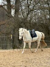 Hij heeft een springzadel met hoofdstel en een westernzadel met hoofdstel, die beide ook gekocht kunnen worden.