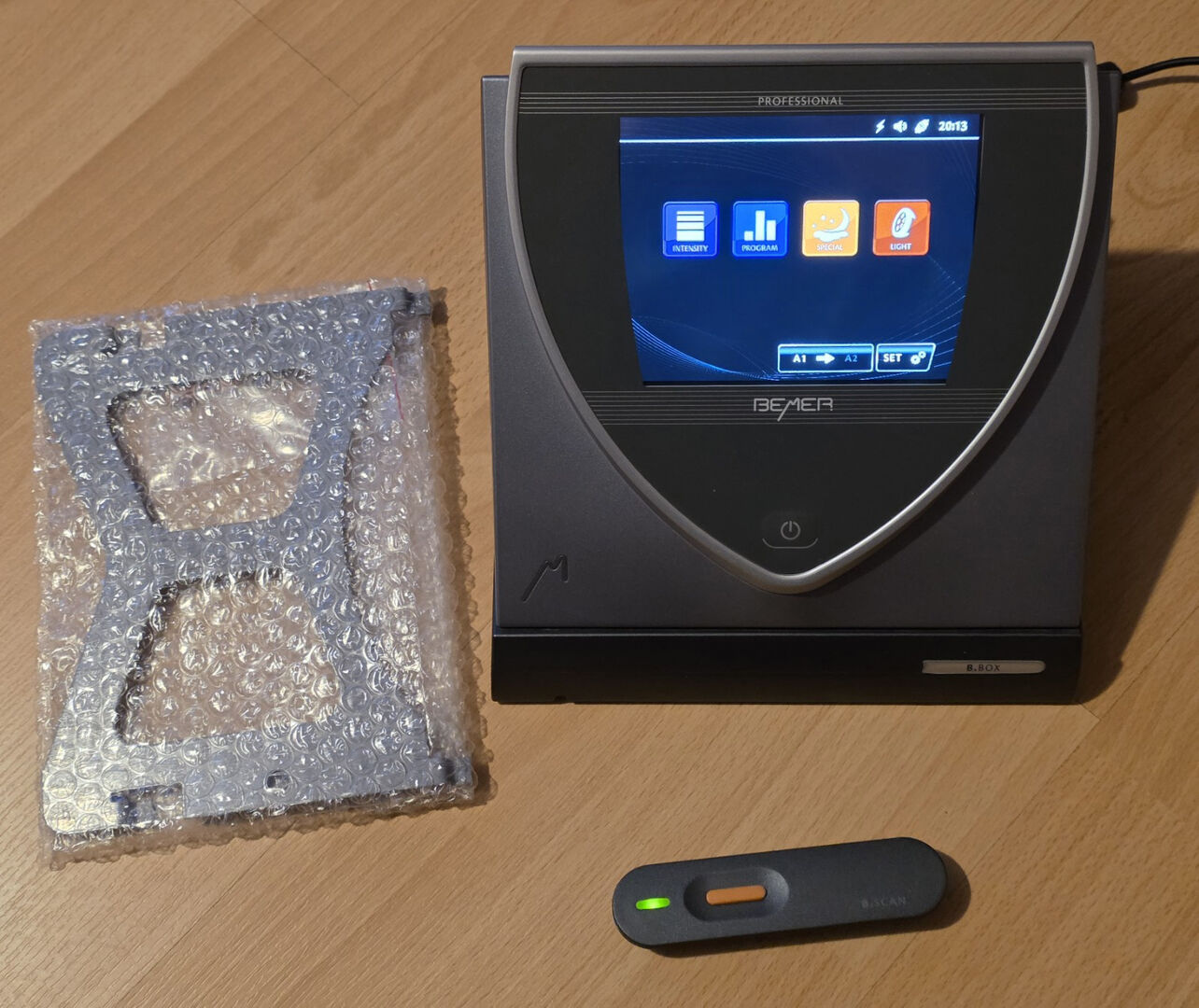 Bemer Pro magneetveldtherapieset. - De set is nauwelijks gebruikt, alleen de B-pad vertoont lichte tekenen van slijtage, de rest ziet er als nieuw uit. Alleen de verpakkingsdoos heeft een paar lichte krasjes.