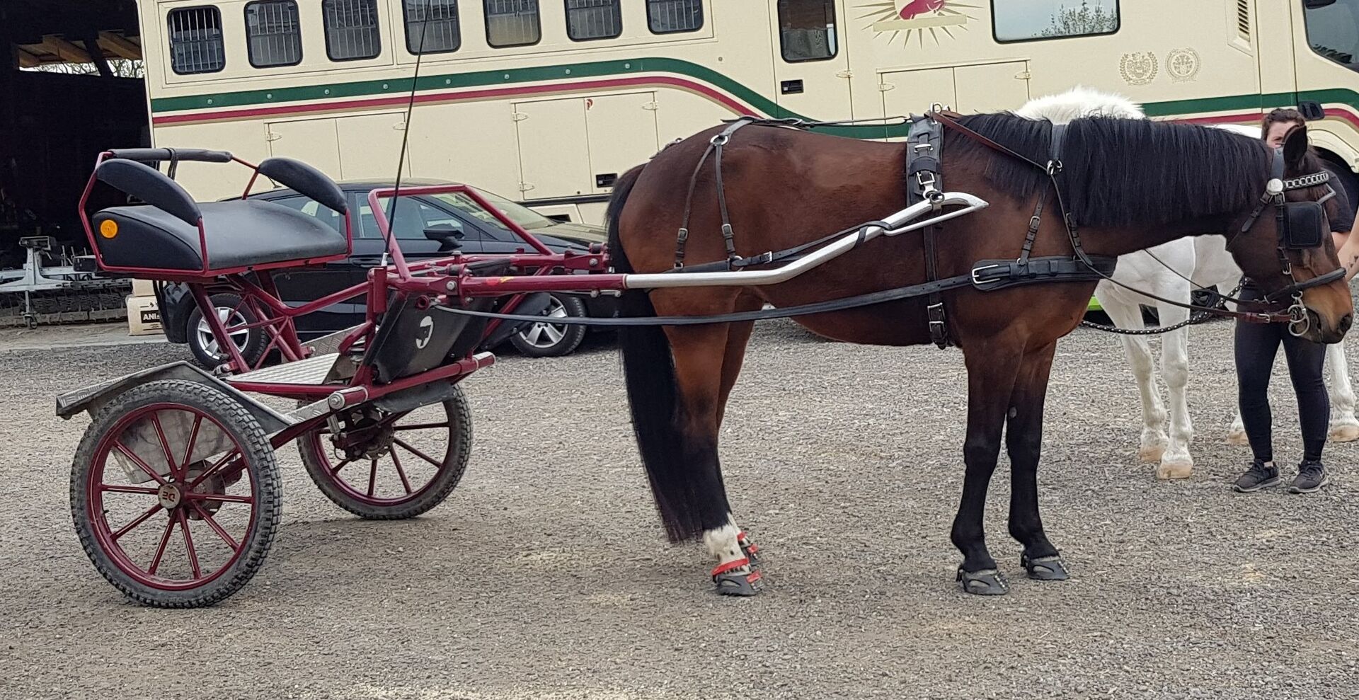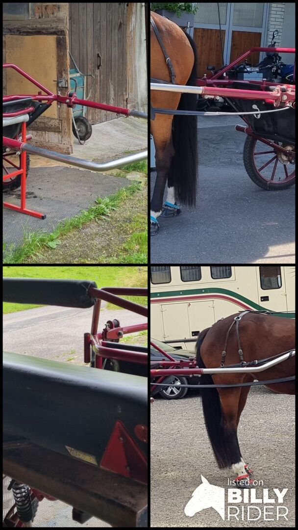 Bequemes und stabile Gig / Einachser Kutsche - Tolles Gig Big-Swing van het merk Delvos Metallbau GmbH. Das Gig wurde von einer Freiberger Stute (Stockmass ca. 154cm) gezogen.
