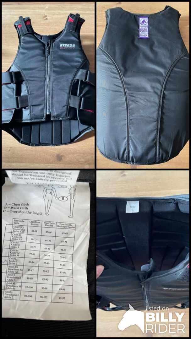 Beschermend vest Steeds Easy Fit II maat "Kind L". - Wij bieden een veiligheidsvest aan voor het kind in zeer goede staat (maat Kind L). De maattabel is bijgevoegd en dient als richtlijn. Omdat het vest verstelbaar is met klittenband op de schouders en zijkanten, kan het lang gedragen worden en "groeit het met het kind mee". De originele prijs is momenteel 100,- EUR. Ophalen heeft de voorkeur - verzenden is mogelijk tegen een meerprijs van 7,- EUR. Aangezien dit een privéverkoop is, is garantie of teruggave uitgesloten.