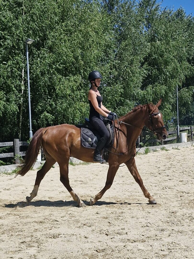 Hij is ingereden in alle 3 de gangen en door mij bereden voor ontspanning, hij zit echt super en heeft een hele prettige galop.