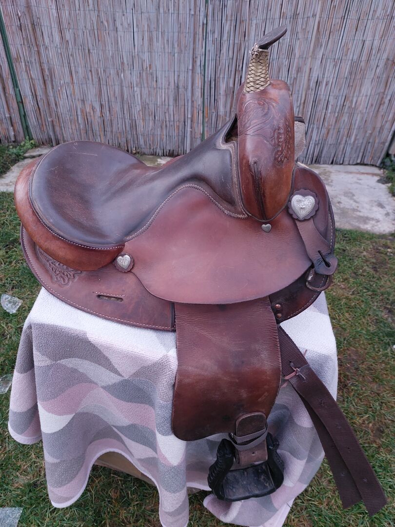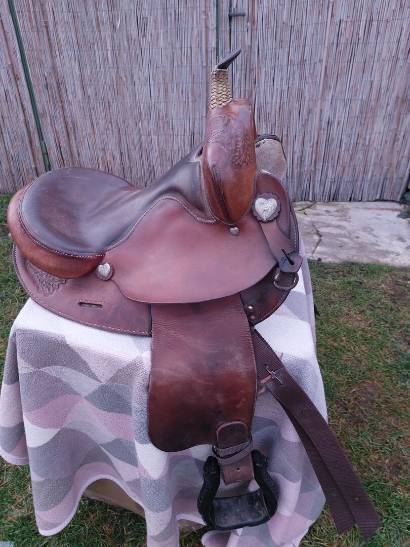 Bighorn western zadel - Donkerbruin Bighorn westernzadel, helaas pas ik niet in het zadel. Het is te smal met 38 cm. 15,5 inch. Geschikt voor Haflinger, Tinker, IJslandse paarden omdat het zadel vrij kort is. Tussen de conchos 23 cm, zadellengte 53 cm. Het zadel is in goede gebruikte staat. Zie foto's. Graag verzending, afhalen via Paypal. Geen garantie geen retour.