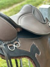 Ik heb dit zadel voor een gereduceerde prijs gekocht omdat het zeer kleine tekenen van slijtage heeft op de rand van de zadelklep. Deze zijn nauwelijks zichtbaar (zie foto's). Het is het zadel dat ik mijn hele leven al wilde hebben. Het is 3 keer uitgeprobeerd door mij en mijn trouwe, oudere metgezel, een Arabische merrie, en samen hebben we ons gerealiseerd dat we niet langer van zadel willen wisselen op onze iets oudere leeftijd. Mijn paard houdt niet zo van de Engelse singel en ik ben niet stabiel genoeg meer om het te gebruiken zoals ik wilde, waarvoor het zadel ontworpen is. Zo jammer. Ik weet zeker dat Barefoot-fans en degenen die Barefoot-fans willen worden alles weten over de voordelen en de kwaliteit: - Ideaal voor cross-country of trail riding - Comfortabel en dicht bij het paard - slijtvast rundleer met open poriën, vuilafstotend - gevoerde kniestukken en klittenband knierollen