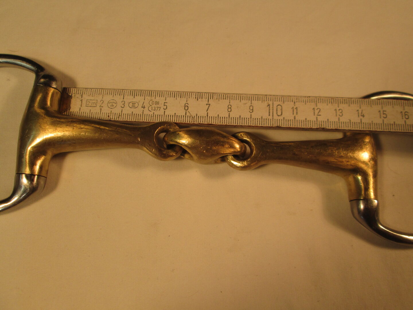1x olijfkop snaffle dubbel gebroken, 13,5 cm aan de zijkanten pitten (zie foto)