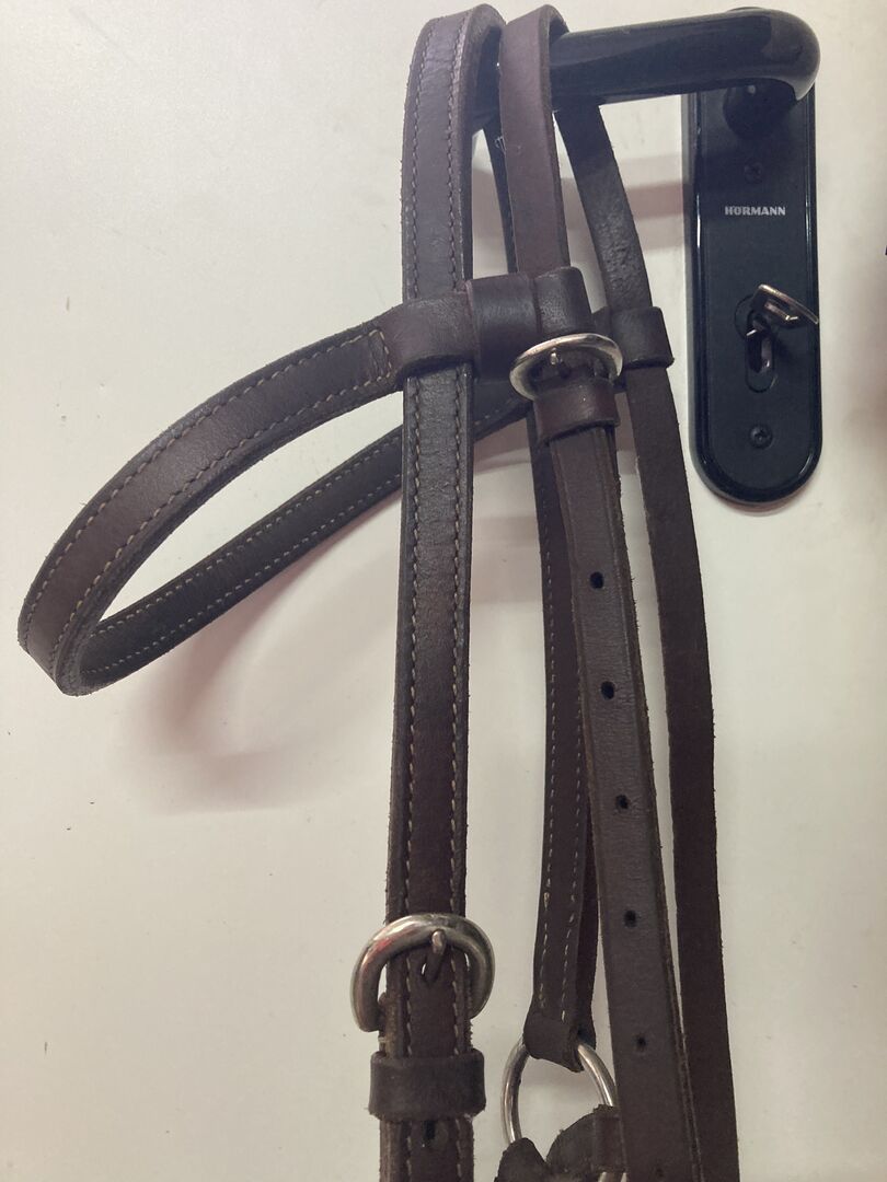 Bitloze Snaffle Sidepull - Deze sidepull is in zeer goede staat, heeft geen scheuren of gaten, het leer is nog erg mooi.