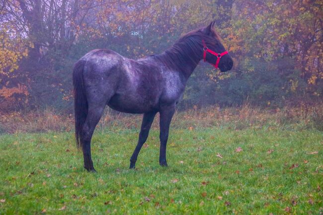 Blauwe Roan blikvanger - Plaats: 66916 Breitenbach Wimpys Dunit Twisten is een zeer aantrekkelijke Quarter Horse hengst, geboren op 29.04.2024. Hij is blauw roan en zal naar verwachting een uiteindelijke stokmaat bereiken van rond de 147 tot 150 cm. Met zijn correcte bouw, zijn compacte en sterke gestalte en zijn goede bespiering overtuigt hij nu al over de hele lijn. De hengst is gezond en 5-panel en IMM n/n getest via zijn ouders. Hij zal opgroeien in een kudde met andere jonge paarden en zal dagelijks worden behandeld. Hij is vertrouwd met de dierenarts en hoefsmid, is ingeënt volgens zijn leeftijd en wordt regelmatig ontwormd. Natuurlijk heeft hij het veulen 1x1 onder de knie. Wimpy's Dunit Twisten laat zich qua karakter van zijn beste kant zien. Hij is heel lief, knuffelig en makkelijk in de omgang. Met zijn stoere karakter verkent hij nieuwsgierig de wereld, houdt van knuffelen en maakt indruk met zijn gelijkmatigheid en mensgerichtheid. Hij kan goed bewegen en heeft een goede afstamming, dus hij is bij uitstek geschikt voor zowel sport en competitie als vrijetijdsbesteding. Hij wordt verkocht met AQHA-papieren en een paardenpaspoort.