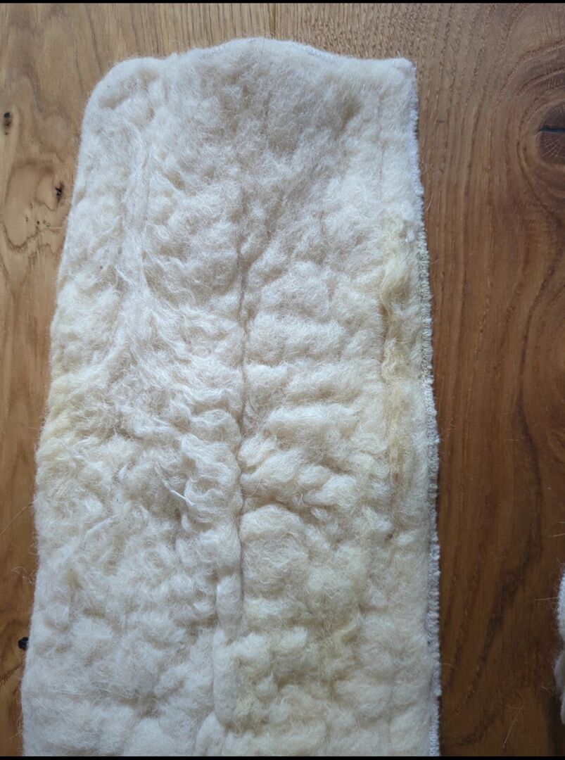 Blote voeten kussenhoes wol - Schapenwollen gewatteerde hoes voor stijgbeugelriemen en borstplaten Weinig gebruikt als stijgbeugelbeschermer en in zeer goede staat, één keer gewassen.