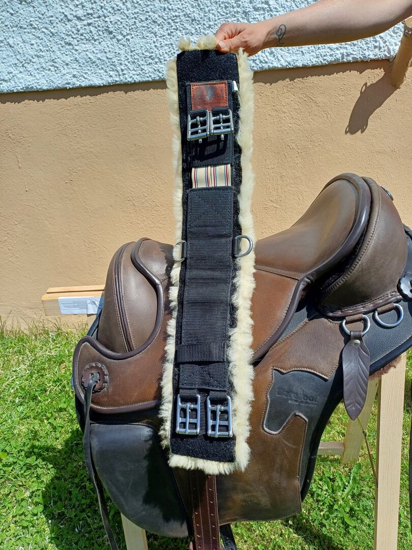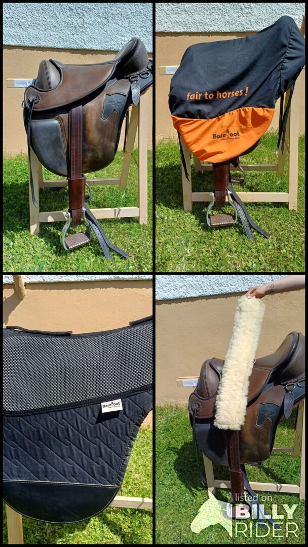 Te koop veelzijdig, paardvriendelijk zadelmodel in zeer goede staat (nauwelijks gebruikssporen, geen zichtbare ruwe plekken) Omschrijving: - ideaal voor crosscountry- en trailruiters - vrij positioneerbare stijgbeugelophanging (5cm) - flexibele V-singel - dik geweven bont onderzijde - gewicht slechts ca. 6 kg - Kleur: bruin/zwart met paardenhoofd - Levering inclusief zadelhoes en verwisselbare pommel - Maat: 1 komt overeen met: Zadel lengte: 50 cm Zadel lengte: 35 cm lengte zadelklep: 53 cm aanbevolen voor damesmaat: 36-40
