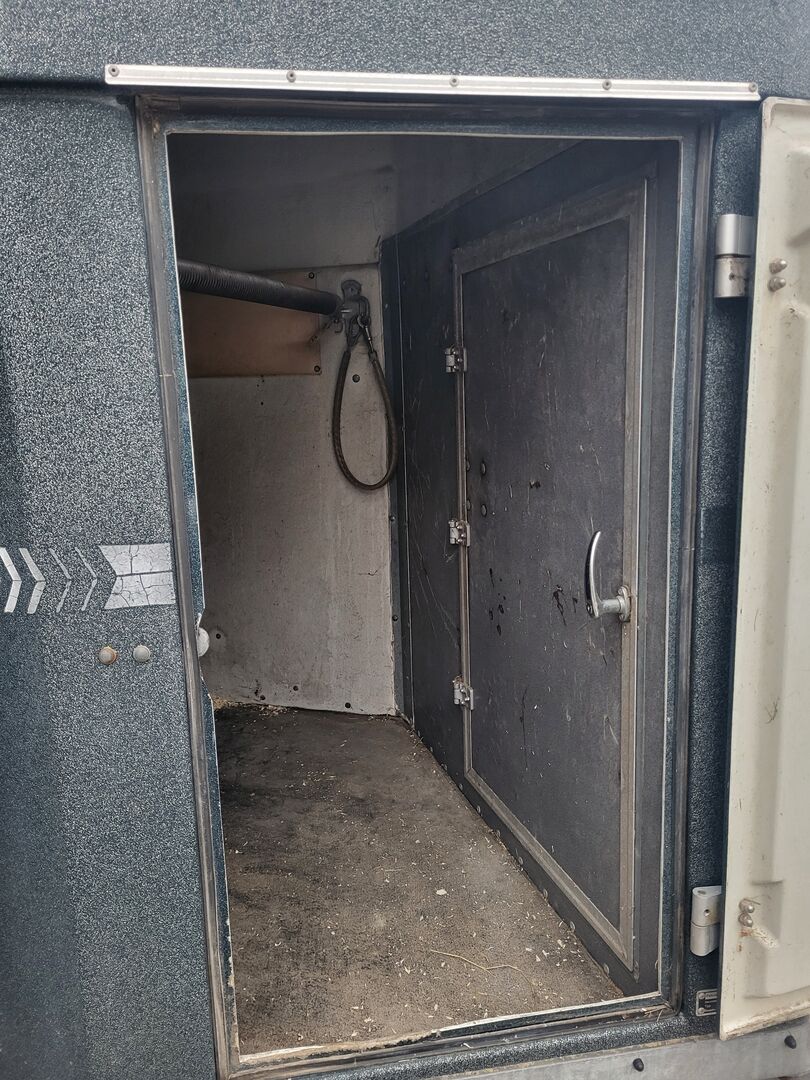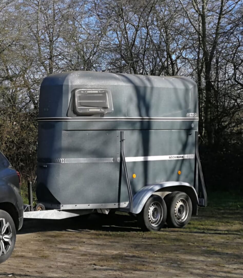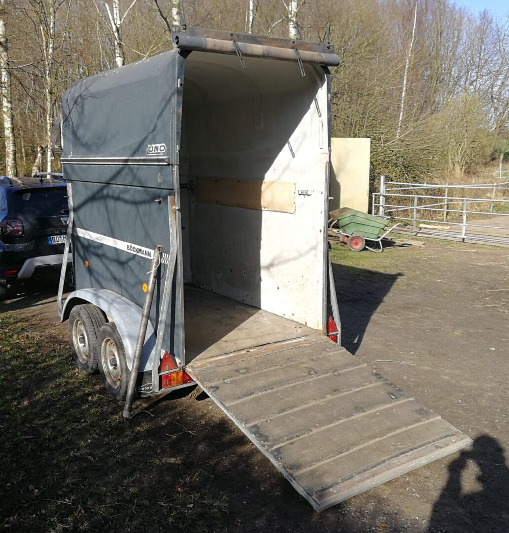 1,5 paardentrailer in goede staat. De volgende HU moet in 6/2025 ingeleverd zijn. De trailer is gebouwd in 1994 en we hebben hem in 2010 gekocht. De vloer is daarvoor vernieuwd. Er is een kleine zadelkamer in. De trailer heeft natuurlijk gebruikssporen, maar geen schade. Hij heeft af en toe overdekt gestaan en is ook af en toe behandeld met Böckmann onderhoudsmiddel voor polytrailers. Hij is momenteel nog in gebruik, dus hij is direct klaar voor gebruik.