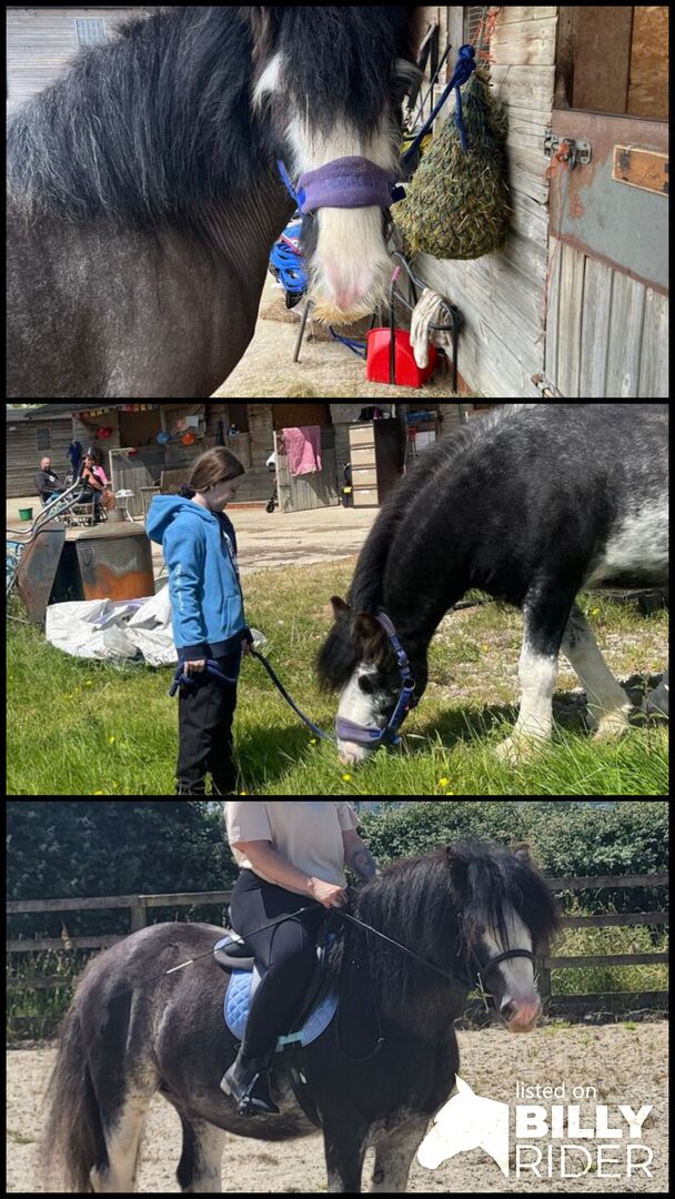 Lovely 14th piebald gelding, 8 years old. Mostly used for hacking and a little schooling. Lives out 24/7 and is fed soaked or steamed hay due to dry hay when I bought him 2 years ago, making him cough. He was fed haylage before I got him. Clipped all year as he gets really hairy and sweaty. Would make a great pony for novice but steps up a gear for experienced rider. He is a lovely boy and would stand for scratches and love all day. I have never jumped him as its not my thing! Mac is up to date with farrier, dentist and vaccinations. Comes with tack and various rugs. Based Buckinghamshire
