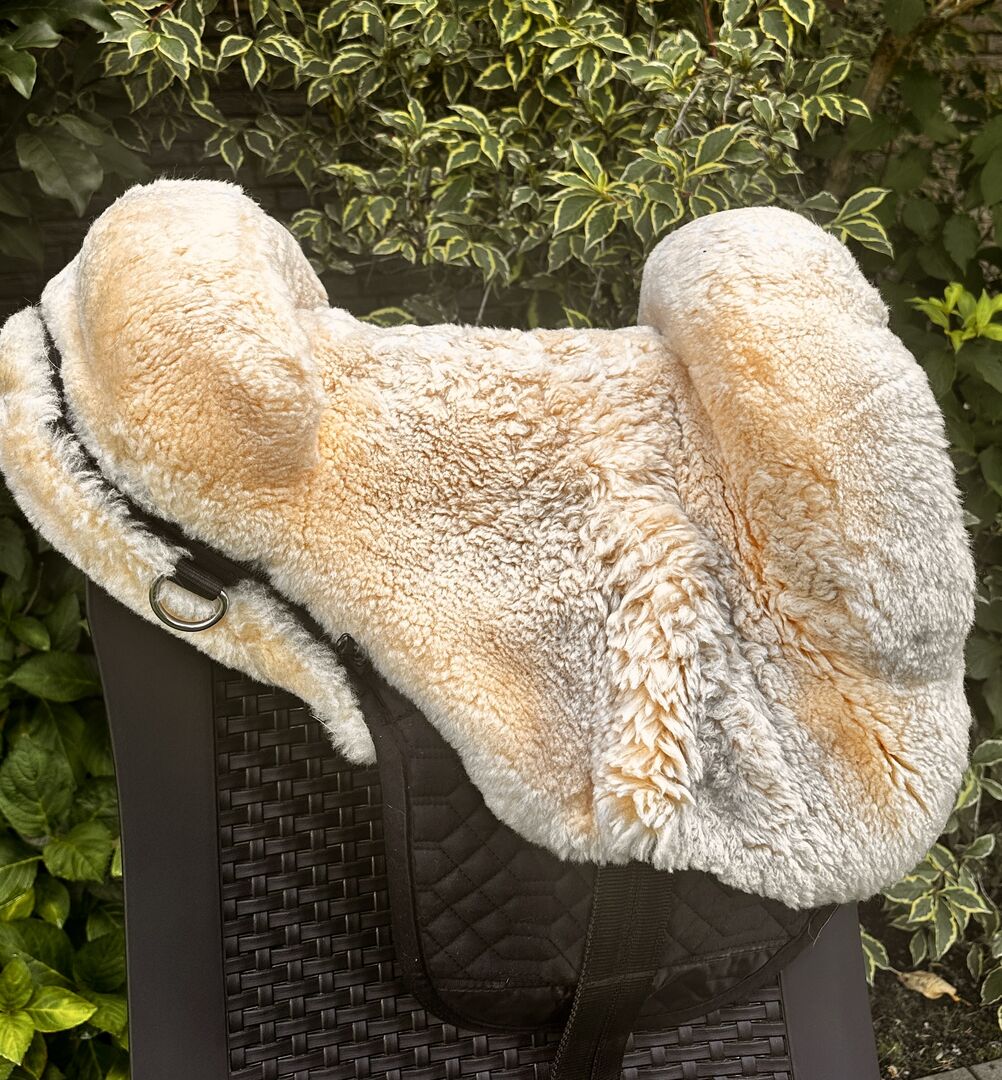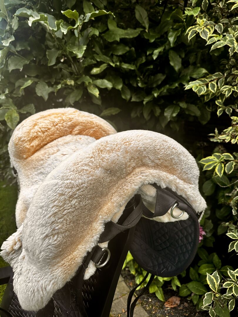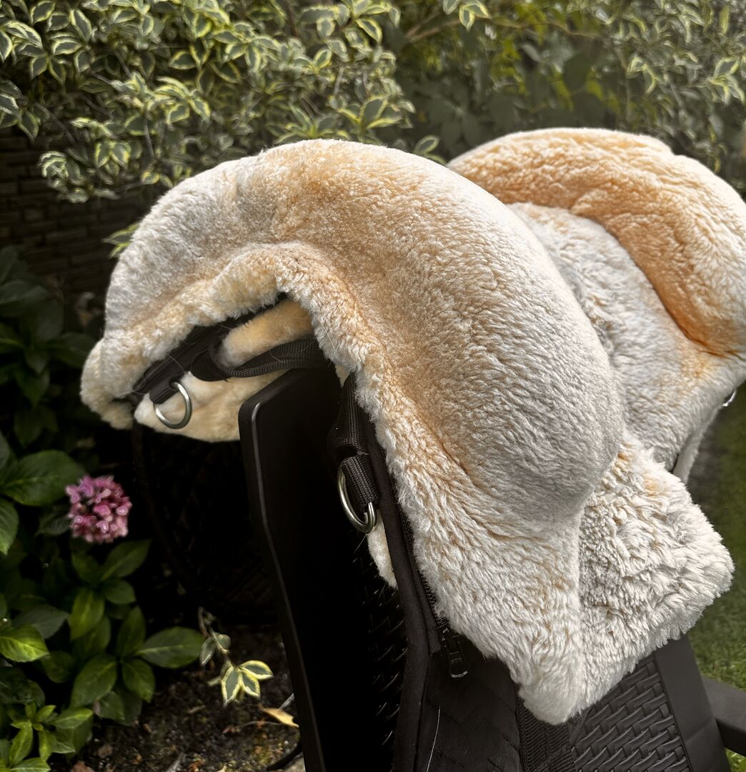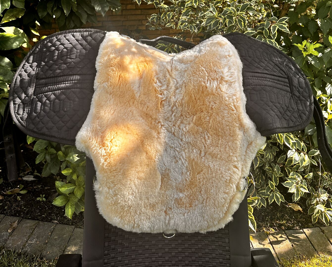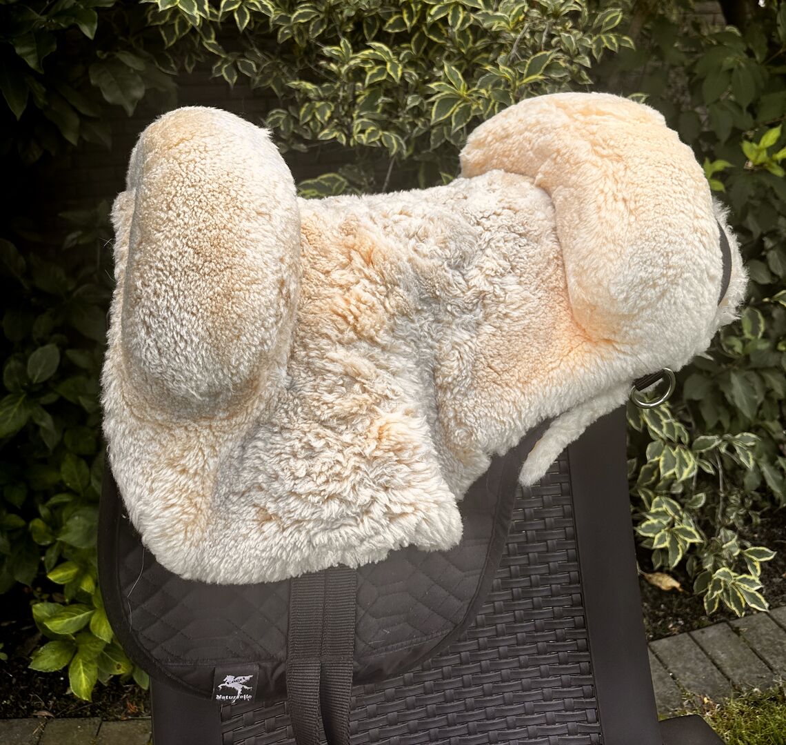 Engel lamsvelzadel met afneembaar zitgedeelte en insteekvak voor opvulmateriaal. Het Engel lamsvelzadel is gemaakt van duurzaam gewatteerd katoen en dicht Australisch Merino lamsvel.
