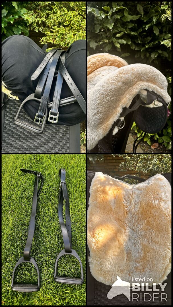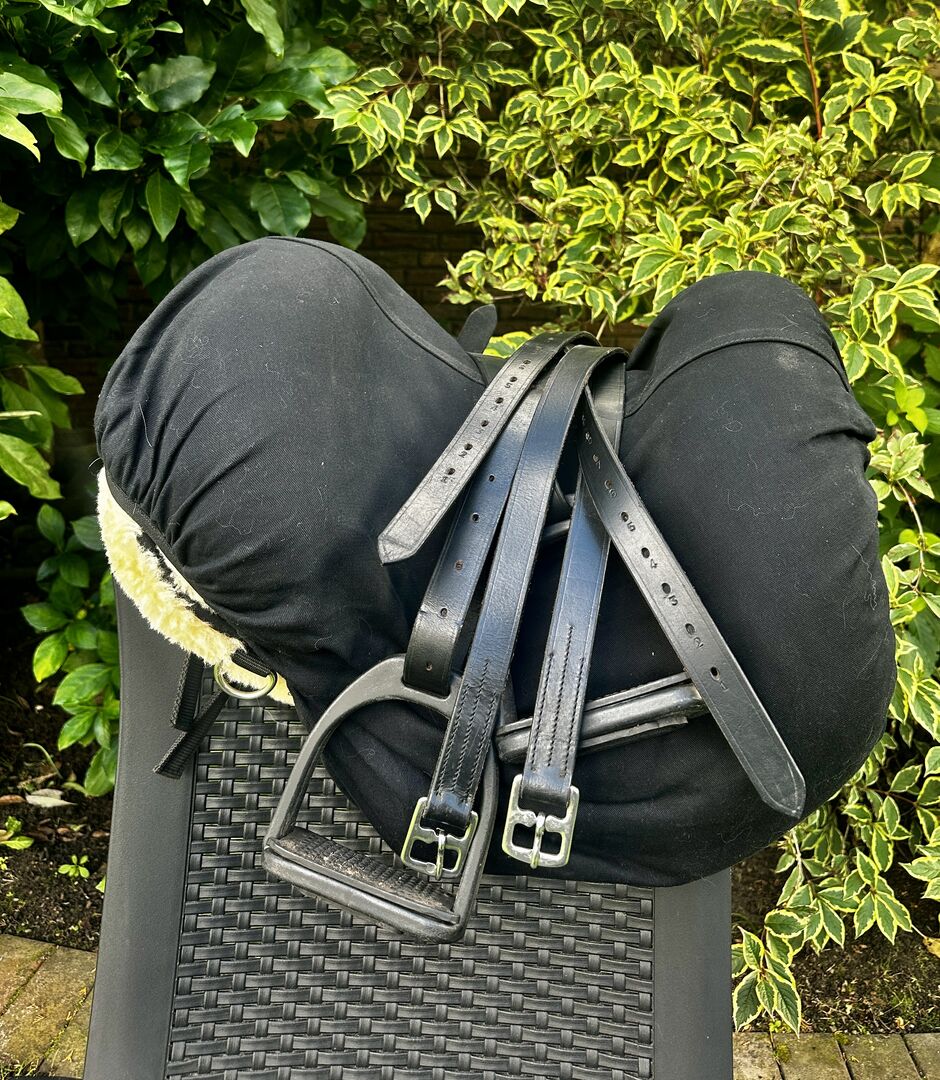 De stijgbeugels en twee stijgbeugelriemen in de lengtes 120 en 140 cm zijn inbegrepen als accessoires. Ook inbegrepen is de Cavaliers maat volledige zadelhoes.