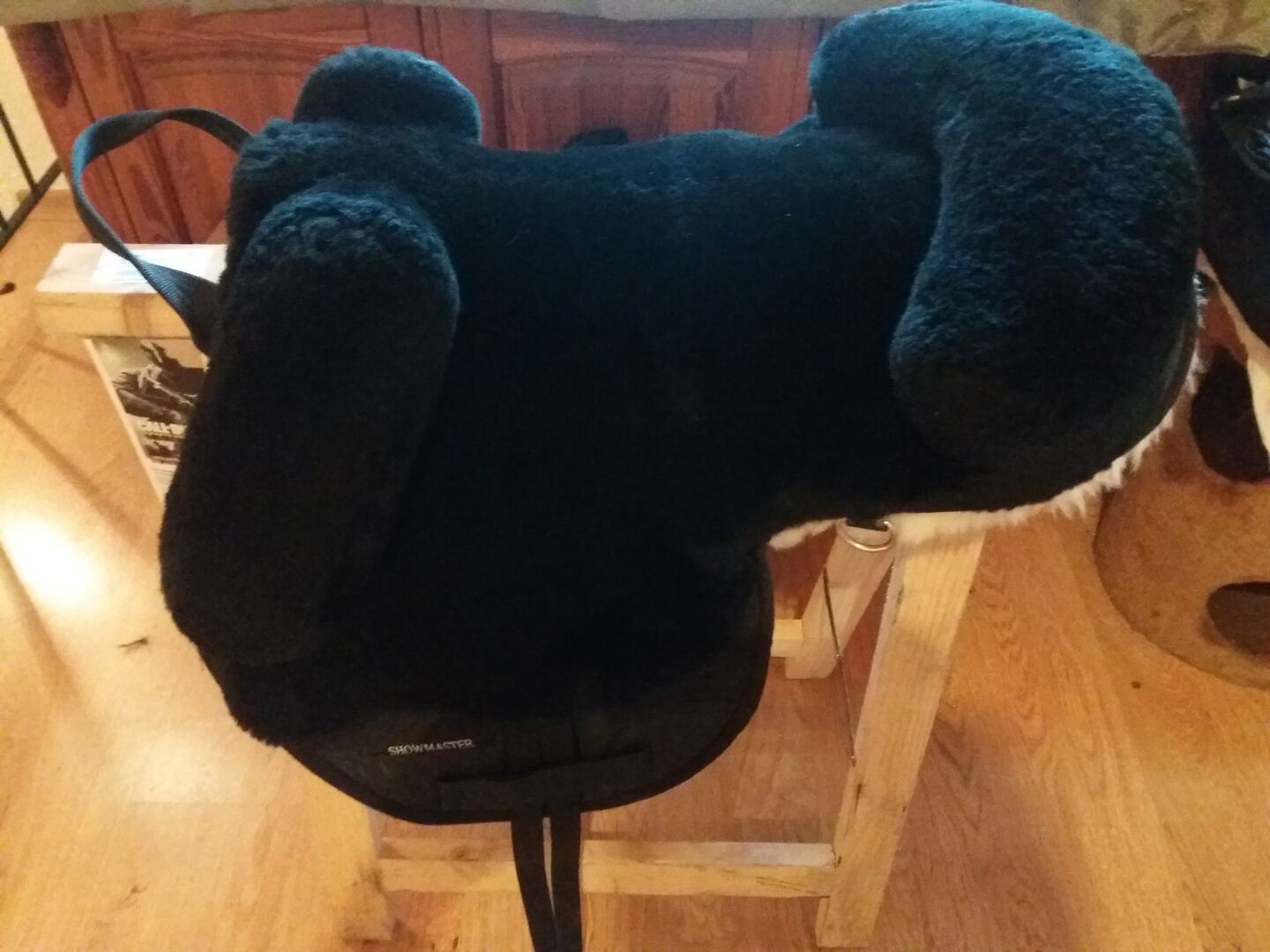 Bontzadel Showmaster - Ik bied te koop aan mijn Showmaster huidzadel. Het is gemaakt van lamsvel en is maar 5 keer gebruikt op mijn merrie. Totale lengte 60 cm. Alle naden, klittenband en ritsen, evenals alle ringen in topconditie. Er lag altijd een zadeldekje op en het was altijd droog opgeborgen.