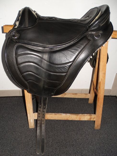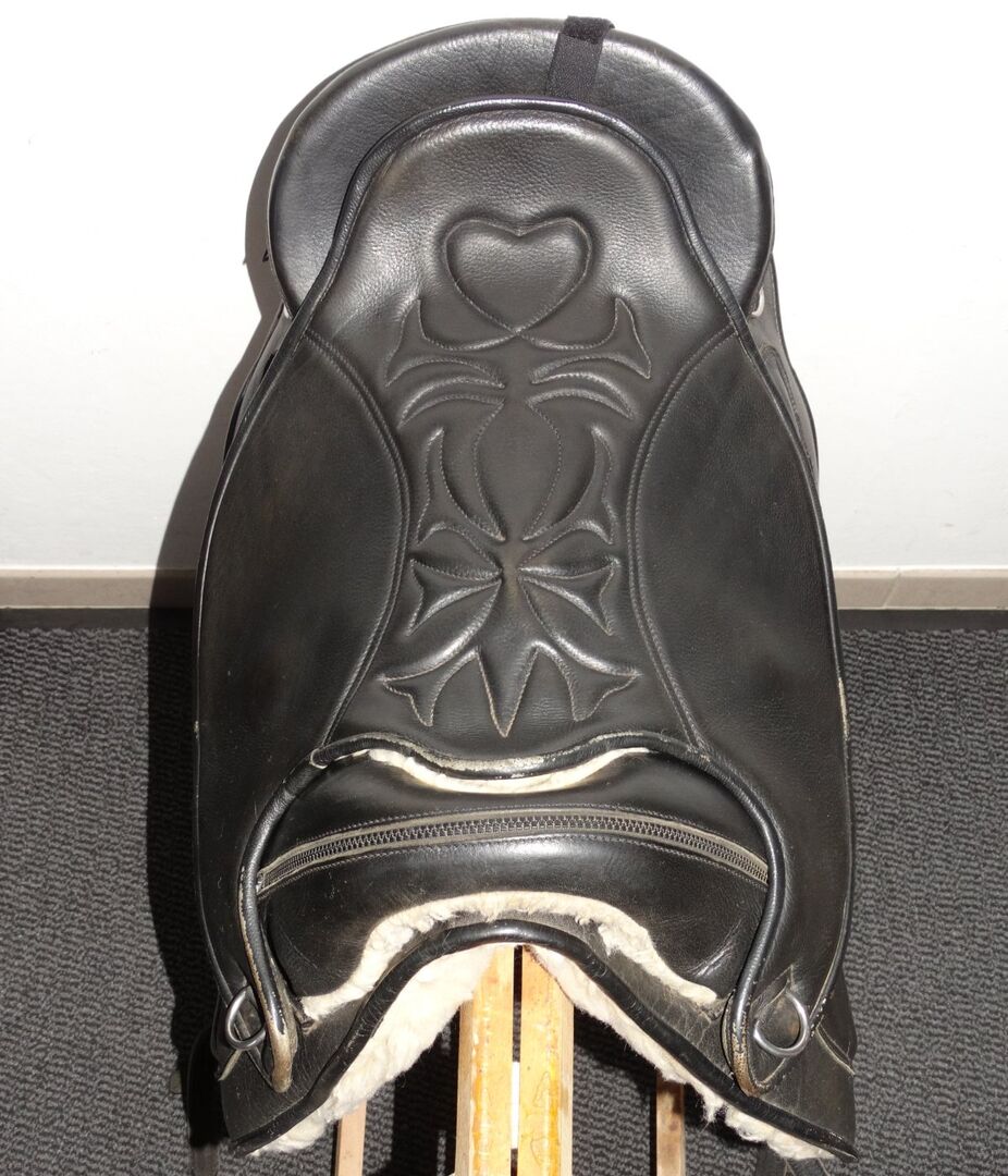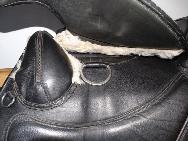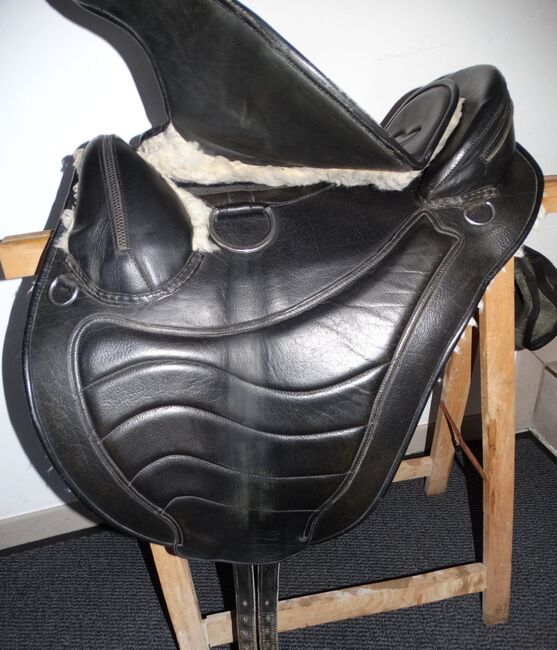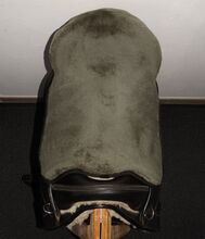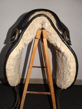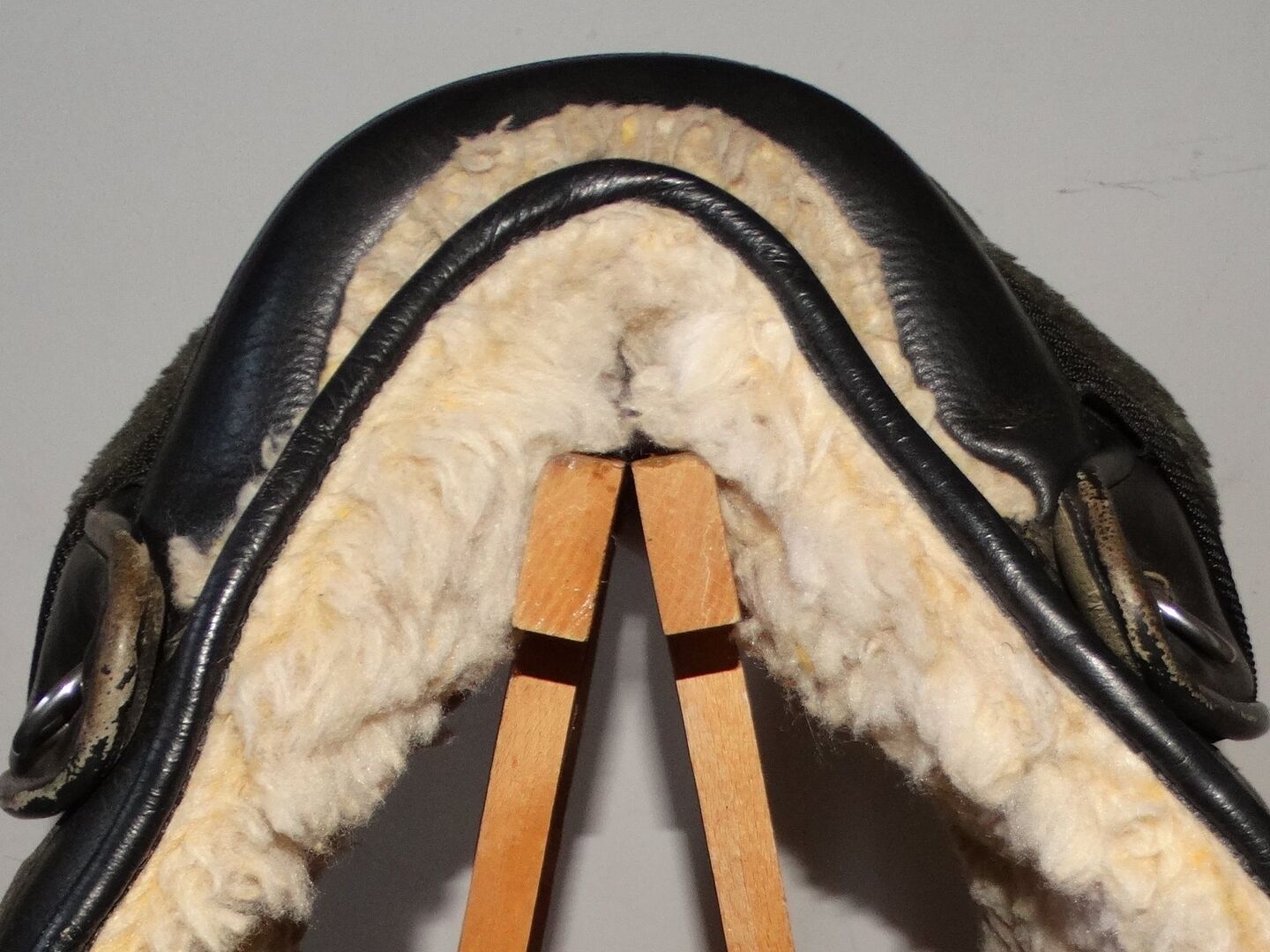 Totaal gewicht incl. zeem net onder de 6 kg. Aanbeveling van de fabrikant: Het boomloze zadel mag niet worden gebruikt zonder deze onderlegger of een soortgelijke onderlegger met inlegstukken. Er is ook een onderlegger van imitatiebont in grijs (zoals op de foto), deze is licht aangepast met twee extra riemen. Zie de foto's voor de conditie, dank u! Wordt alleen samen verkocht, niet apart! Nieuwprijs voor alles is ongeveer 360€. Het zadel is momenteel nergens te koop!