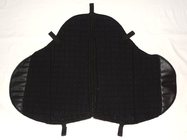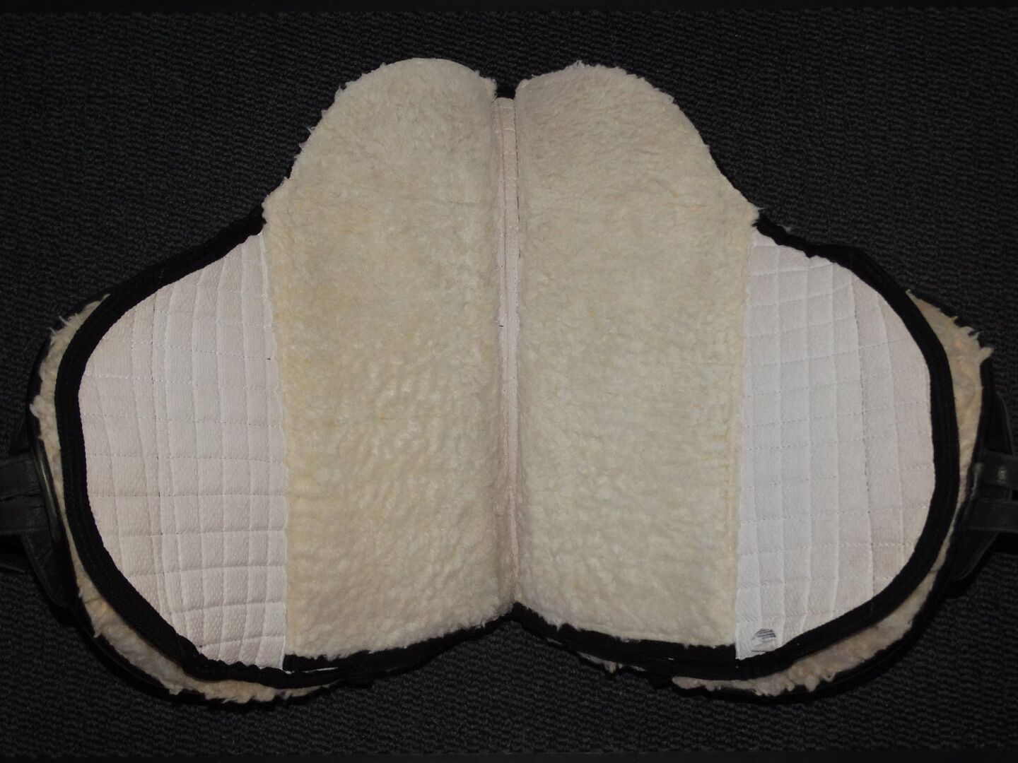 Incl. gebruikt zadeldek/correctieonderlegger met inlegvel (nieuwprijs 68€ incl. verzendkosten) - Merk: Covalliero/Kerbl - Model: Freedom, 32440 - Maat: VS, ruglengte 61 cm, flaplengte 48 cm - Kleur: zwart/nature/wit - Zakken van imitatiebont met klittenband (voorkant) - incl. uitneembare, drukverlagende inzetstukken van zacht synthetisch rubber ca. 7-8 mm - Riemversteviging aan de onderrand van kunstleer - Buitenkant: 100% katoen, vulling: 100% polyester - 30°C wasbaar