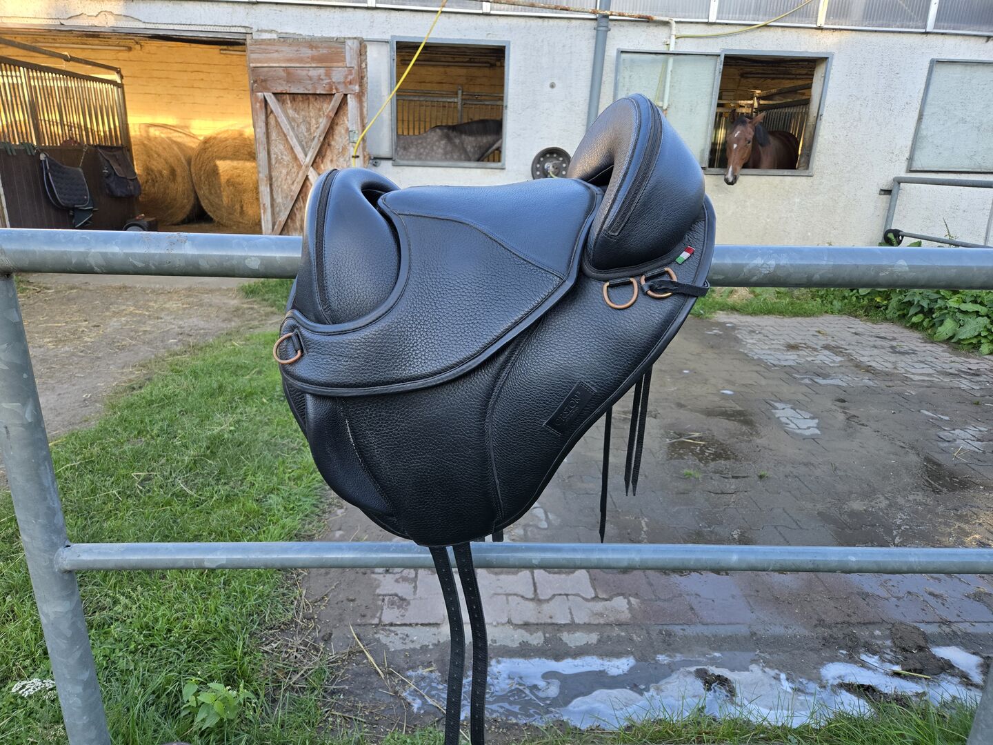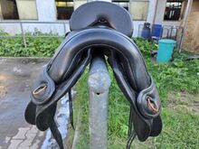 Boomloos zadel van het merk Torsion - Super mooi, comfortabel boomloos zadel. Bijna als nieuw... je kunt de singelstoten zien... zo goed als nieuw. Demonstratie zadel originele prijs 1160€ - zwart - 16 inch zit (46cm meting groene lijn op de laatste foto) - kleine, stevige knierollen - goud-/bronskleurige ringen voor sluitingen - leren riemen (bijv. voor het opbergen van een jas) - met terugsnijding - verstelbare stijgbeugelbevestiging - Endurance onderzijde, die gewatteerd en aanpasbaar is in aanvulling op de pad