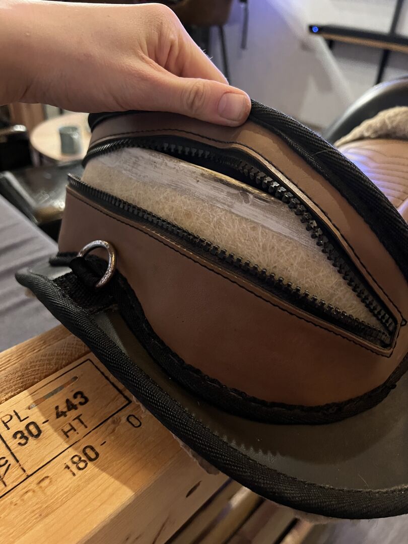 Boomloos zadel vergelijkbaar met Barefoot Cheyenne ca 18". - Ik verkoop een gebruikt boomloos zadel in goede staat. Het merk is niet bekend maar het zadel is vergelijkbaar met de Barefoot Cheyenne. Het zadel is gemaakt van onderhoudsvriendelijk kunstleer en er zit bont aan de onderkant. Het bont zou een beetje geborsteld kunnen worden, maar helaas heb ik hier geen borstel voor. Aan de linkerkant van het zadel zitten helaas 3 kleine gaatjes op de klep, maar deze zouden niet verder open moeten gaan als je ervoor zorgt dat je op deze plekken geen rits draagt. Een zadelmaker zou er zeker iets overheen kunnen naaien.