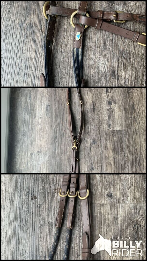 Borstplaat donkerbruin - Driepunts borstplaat in goede staat, maat warmbloed. Merk vergeten, misschien herkent u het symbool. Gebruikelijke tekenen van gebruik en verkleuring. Kan verstuurd worden voor 5€.