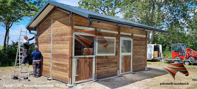 Bouw buitenboxen & paardenstal en koop open stal - Weidehut - Web: www.professionelle-aussenboxen.de