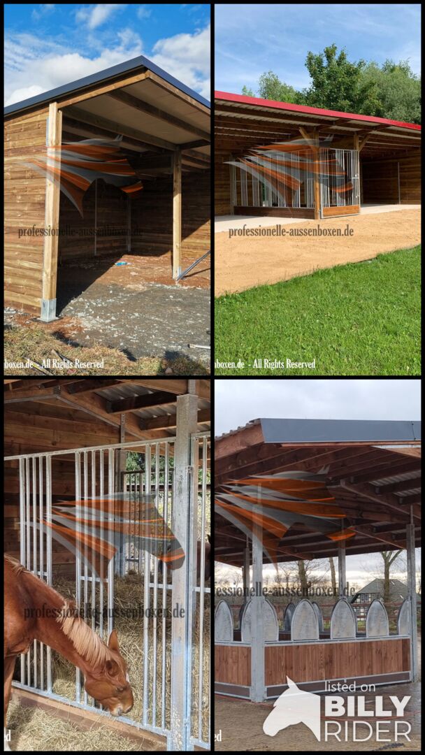 AUSSENBOXEN biedt hoogwaardige schuilplaatsen en overkappingen voor paarden, ideaal voor weiden, paddocks en voederplaatsen.