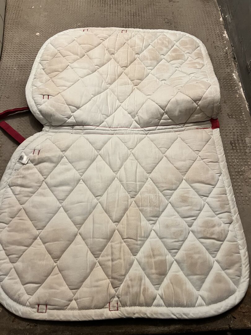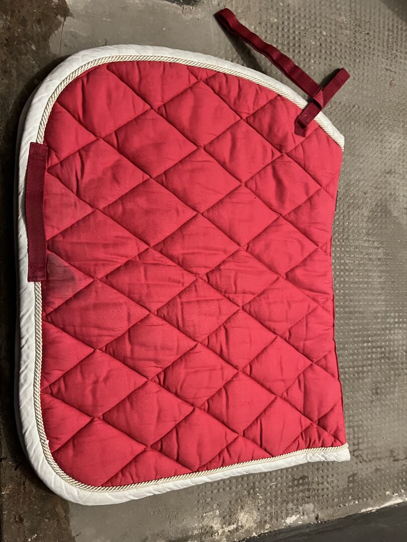 BR Zadeldek - Weinig gebruikt BR zadeldek in roze. Het heeft geen gaten of scheuren. Alleen aan de onderkant is te zien dat het op het paard heeft gelegen. paard.