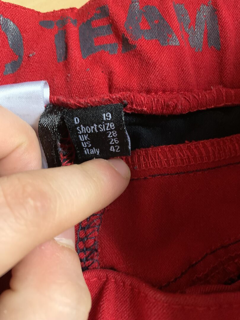 Broek rood blauw - Ik verkoop een rijbroek in maat M. De rijbroek is als nieuw. De zakken zijn diep, zodat de mobiele telefoon er niet uit kan vallen tijdens het rijden. De mobiele telefoon kan er gemakkelijk in en uit. De pijpen zijn elastisch aan de onderkant zodat de klittenbandsluiting geen krassen maakt tijdens het rijden. Er zitten geen vlekken of gaten in de broek.