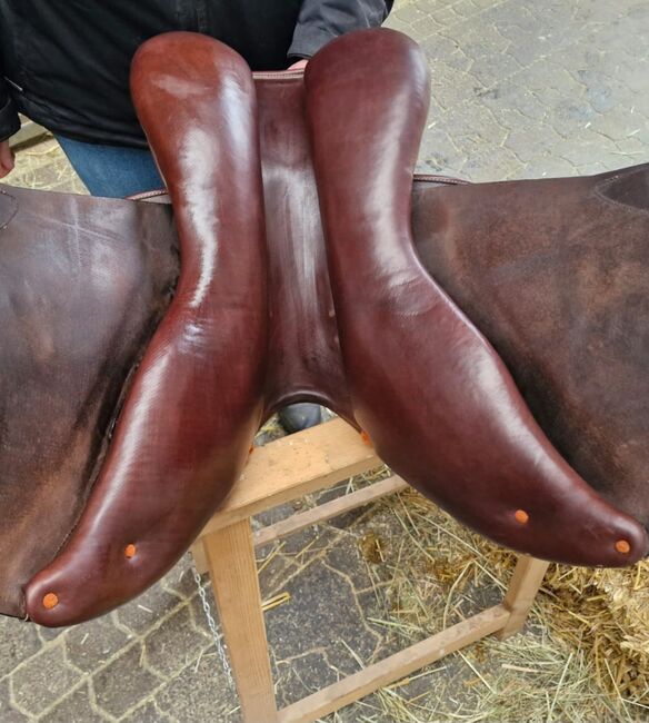 Bruin Erreplus springzadel - Ik verkoop een zelden gebruikt ongeveer 5 jaar oud bruin zadel van Erreplus Tech, dat weinig gebruikssporen vertoont. Zitmaat 17 inch. Alle andere maten staan op de foto's. Tot nu toe lag het op een sportieve Tinker merrie met een brede rug en lage schoft. Het zadel kan nog aangepast worden aan de slokdarmplaat en de panelen. Aangezien dit een particuliere verkoop is. Er is geen garantie, geen retournering. Kan afgehaald worden in Eitorf of Werfen-Windeck.