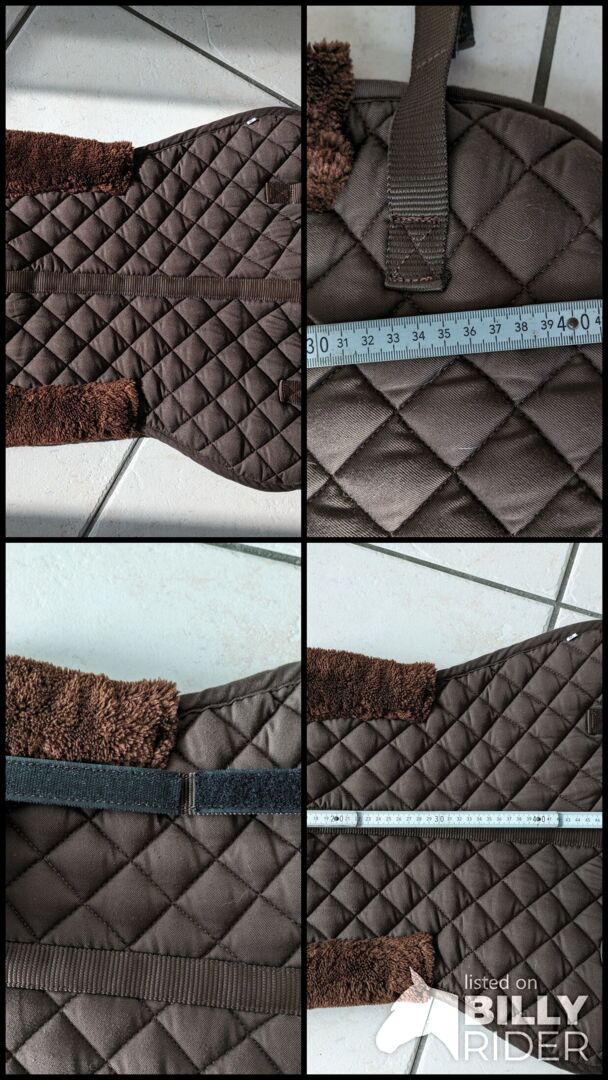Het zadeldek is alleen op het paard gelegd om te testen en is zo goed als nieuw. Het teddybont heeft geen enkele slijtage en de klittenbandsluitingen zijn in perfecte staat.