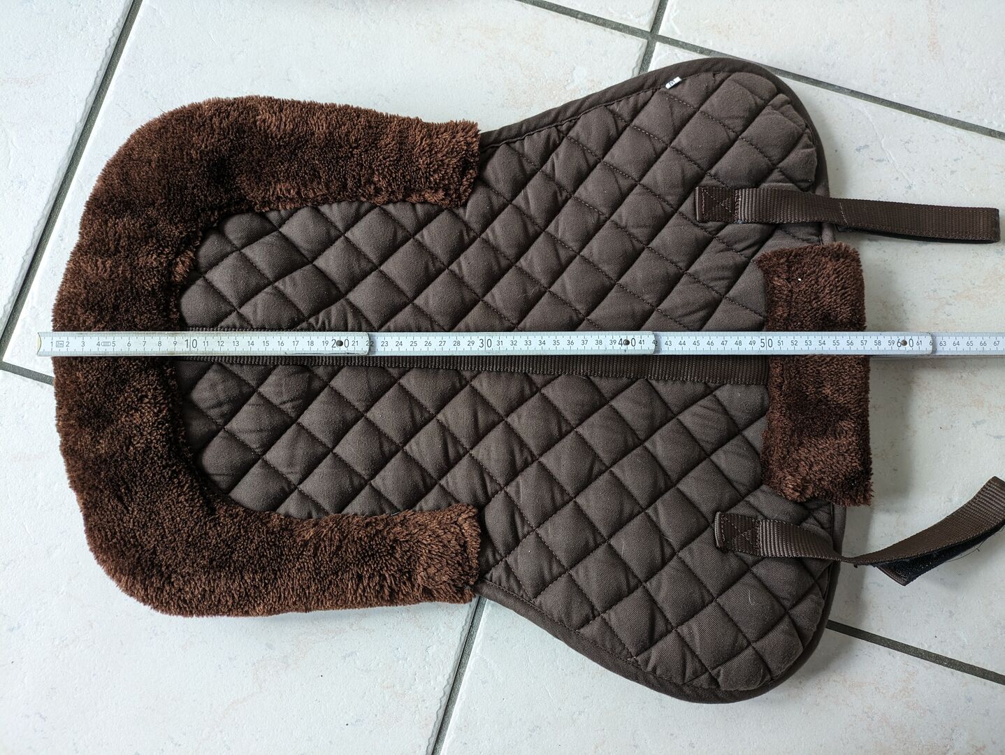 Bruin zadeldek - teddybont WB - Ik verkoop mijn als nieuwe zadeldek met teddybont in maat M/WB Het heeft een totale lengte van 57 cm op het breedste punt 44 cm en 36 cm aan de achterkant.