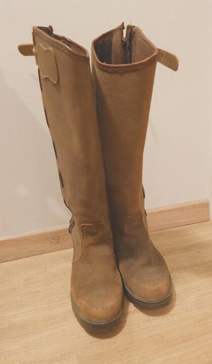 bruine rijlaarzen maat 39 - Gebruikte rijlaarzen te koop in maat 39, niets kapot, de ritsen werken perfect. De kuitwijdte is ongeveer 37 cm. Naast de rits zit elastiek zodat de laars zich aan het been kan aanpassen. De schachthoogte is ongeveer 44cm.