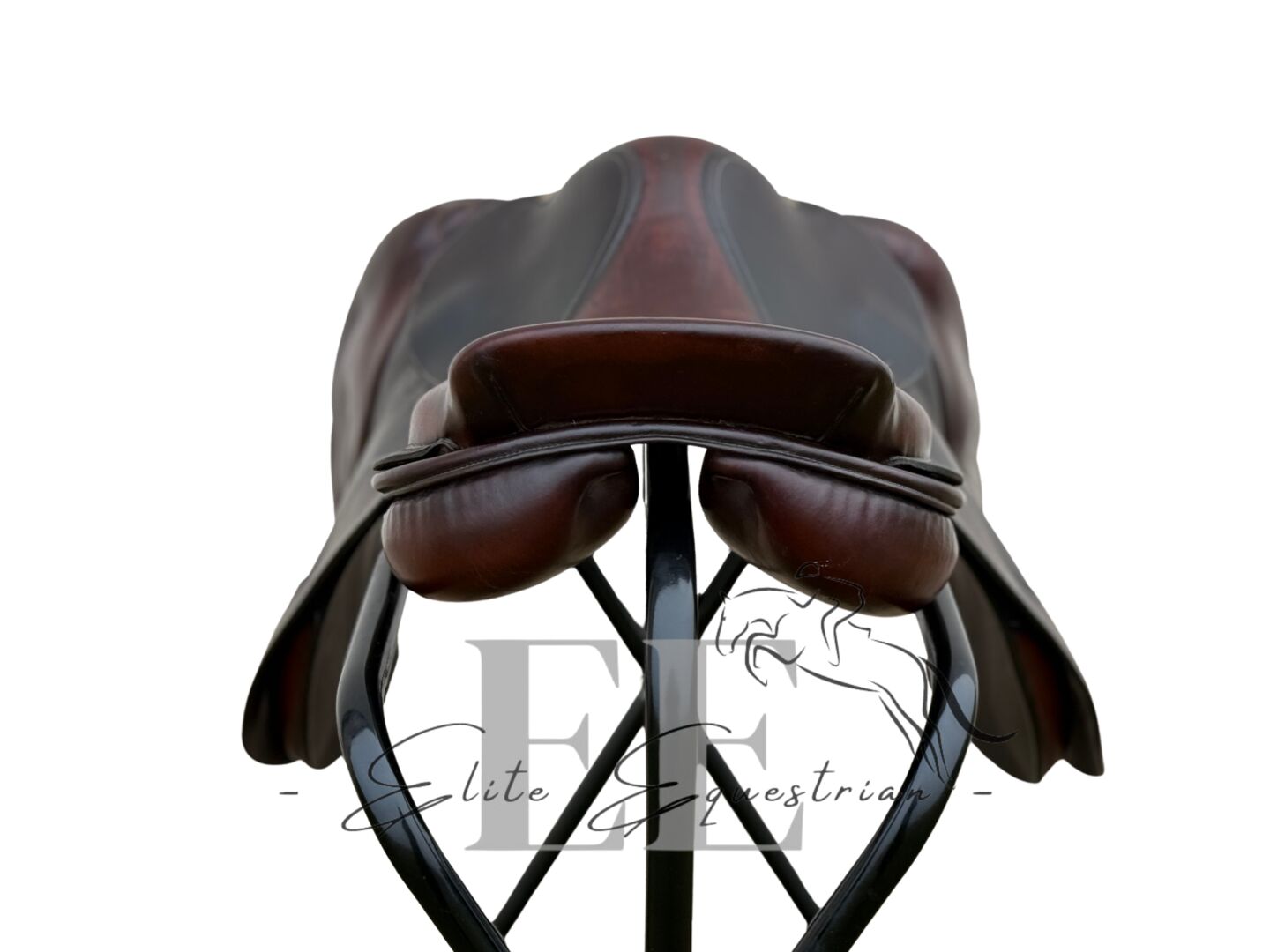 Bruno Delgrange springzadel 17,5" - Te koop is een Bruno Delgrange springzadel dat de perfecte combinatie van elegantie en functionaliteit biedt. Het verfijnde vakmanschap en de hoge kwaliteit van het Franse leer maken het speciaal, waarbij het leer door de jaren heen nog zachter en comfortabeler is geworden.