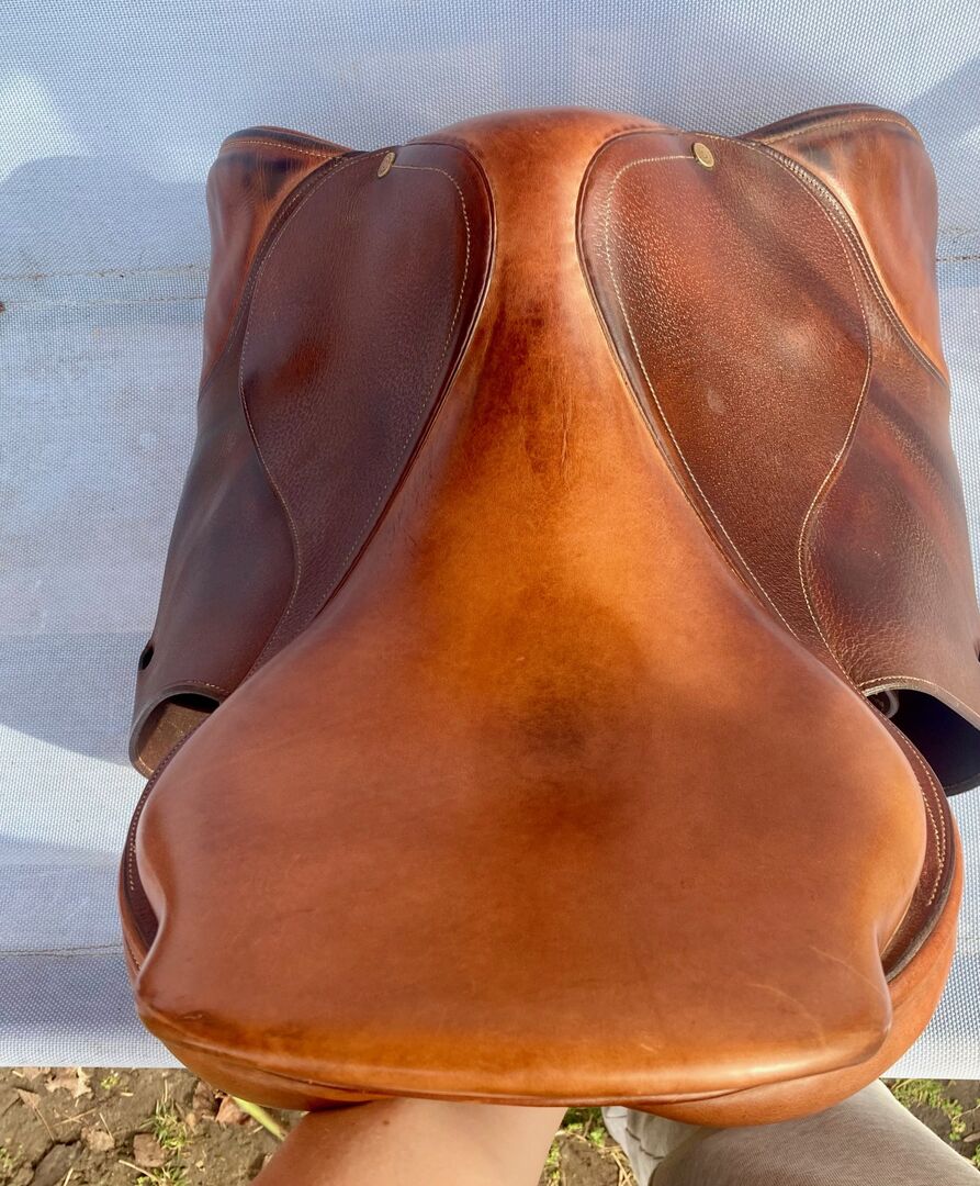 High quality French saddle, extemely durable. Close contact, you can feel every move of your horse and give precise aids. The reason of selling is that my elderly horse lost some muscles around the whithers, so he needed a smaller size. Also the saddle is more suitable for experienced jumper horse riders with a better seat than mine. :)