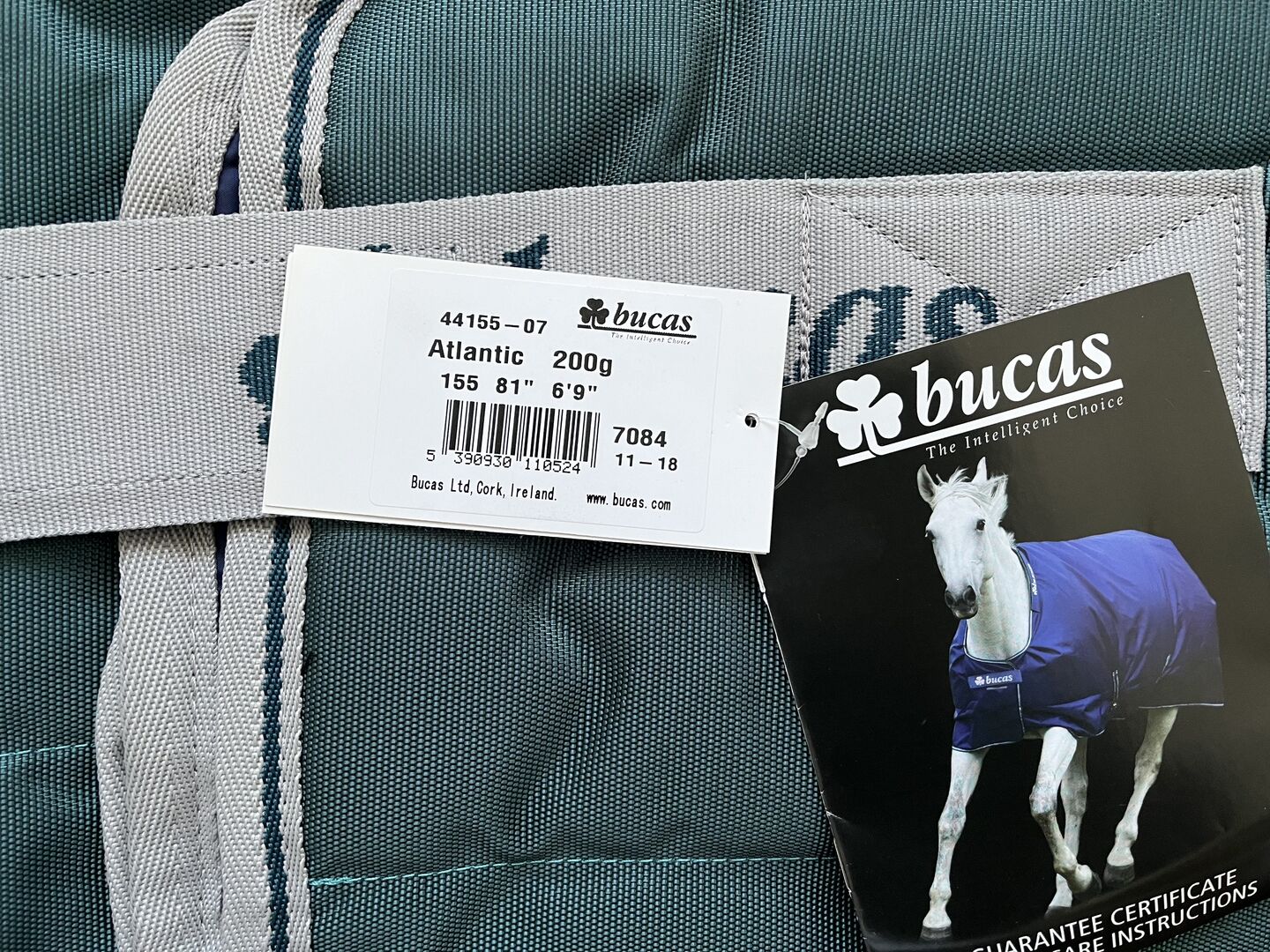 Bucas Atlantic 155 cm 200g buiten regendeken - Nieuw en origineel verpakt Bucas Atlantic regendeken met 200g vulling in de maat 155cm.
