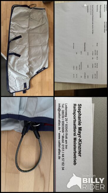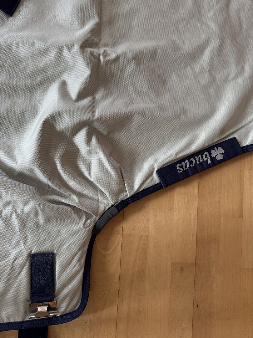 Bucas Power wisselverlichting/140 - Zilver - Het deken is in zeer goede staat (originele factuur bijgevoegd, originele prijs: 210 EUR), is zelden gebruikt en is professioneel gewassen voor de verkoop (factuur bijgevoegd). Bijzonderheid: Zadelmaker Stefanie Mayr heeft coupenaden in de schouders genaaid om het paard meer schoudervrijheid te geven - een aanzienlijke verbetering van de pasvorm.